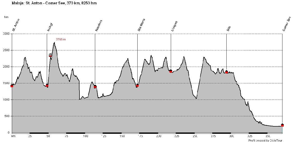 Von St. Anton an den Comer See 6 Etappen - 370 km - 8250 Höhenmeter