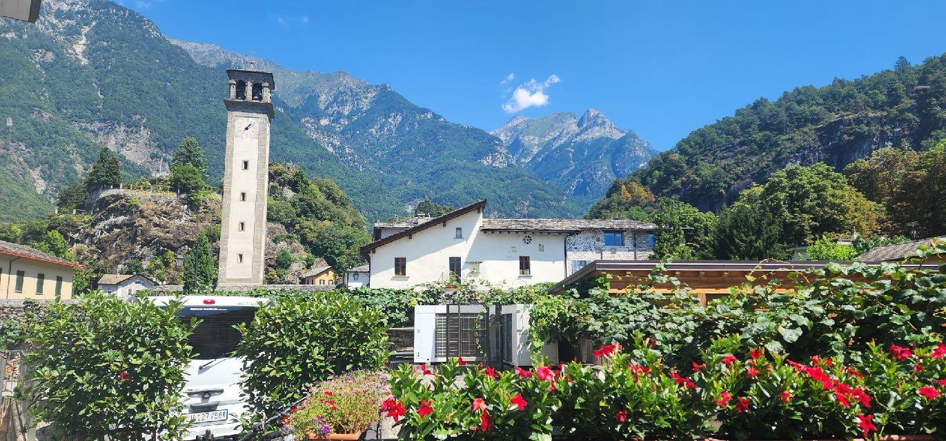 Noch unberührt ist die spiegelnde Wasserfläche des Silser Sees, wenn wir mit unseren Rädern starten. Hoch über uns stürzt der junge Inn mit einem imposanten Wasserfall herab. Wir begreifen warum der Alpentourismus von hier vor mehr als 200 Jahren seinen Anfang nahm und warum Filmemacher immer wieder hierher gezogen werden. Wir erklimmen den Maloja-Pass beinahe gänzlich ohne Höhenmeter. Von nun an gehts bergab. Auf uralten, versteckten Karrenpfaden arbeiten wir uns hinab ins Bergell. Die Ortschaften haben plötzlich einen ganz anderen Charakter, auch die Berge sind plötzlich schroff und wild. Wir genießen ein herrliches Stück bester Kastanientorte mit Blick
