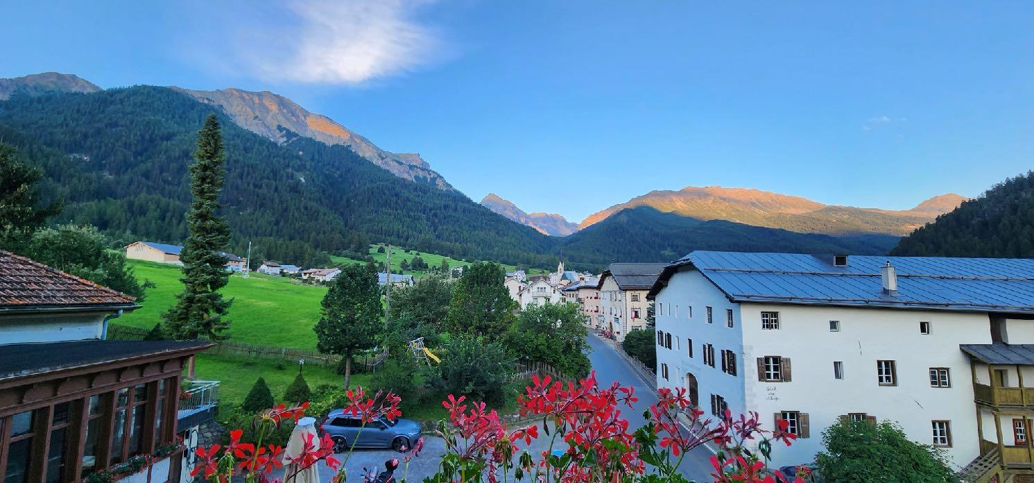 Der Blick aufs Höhenprofil verdient heute wieder Respekt. Die Anstiege wollen bezwungen sein. Der erste Buckel hoch zur Norbertshöhe ist über Asphalt schnell geschafft. Danach erwartet uns jedoch die erste Herausforderung. Wer sagt, dass bergab nicht anstrengend sein kann? Auf teils kniffligsten Wegen mit herrlichen Wurzeln tasten wir uns wieder ins Inntal hinab. Die „Martina-Trails“ werden uns noch lange in Erinnerung bleiben. Dann ist jedoch erstmal Schluss mit Herausforderungen. Wir spulen am Radweg nach Scuol die Kilometer ab. Teils kräftezehrend geht es dabei immer wieder bergauf, bergab. Wann kommt endlich der konstante Anstieg? Wir passieren den legendären Ort Sur En. Von hier zweigt der spektakuläre Schmugglerpfad ins Val d’Uina ab. Diese lassen wir jedoch links liegen. Nur unsere Transalp Uina nimmt sich dieses alpinen Highlights an. Wir kurbeln weiter bis ins Örtchen Scuol. Die Gegend hat unter Mountainbikern den besten Namen. Dann endlich ist er da, der konstante Anstieg