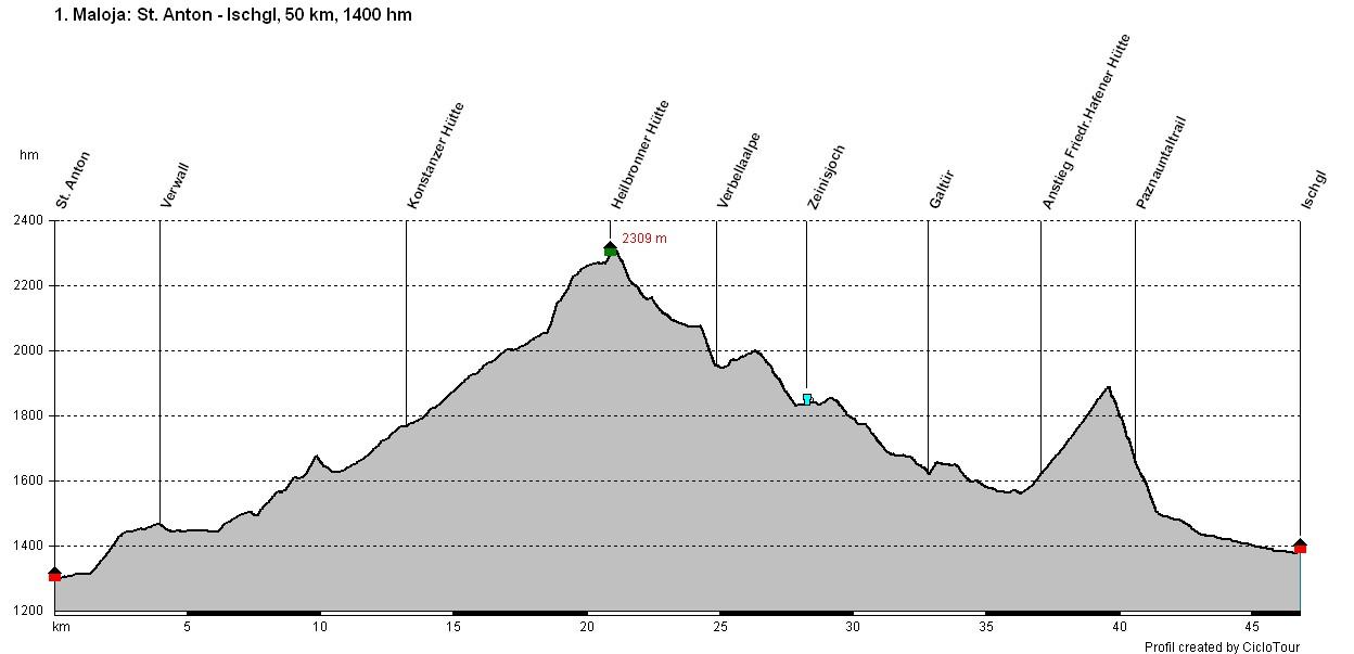 Transalp Maloja 1. Etappe - 50 Kilometer - 1400 Höhenmeter von St. Anton nach Ischgl