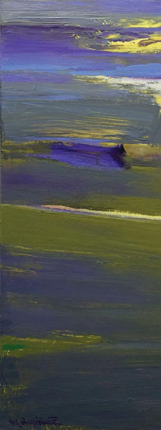 In the presence of his paintings, Hawkins hopes the viewer feels the same connection to nature he experiences in his studio—nature as conduit to peace, beauty and quietude. “I hope my paintings issue an invitation to pause and take a moment to experience the energy inherent in the work,” he says. “Forging a connection to calm, silence and stillness is essential in this busy world we live in. To be conscious of that moment and to connect with the self and peacefulness can be liberating!”