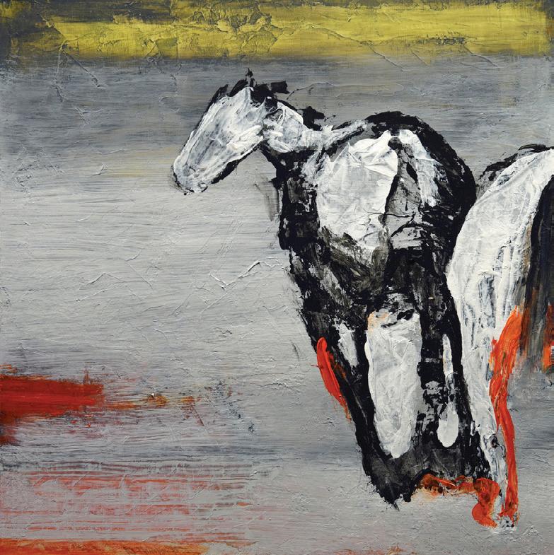 The mystery of unknowing. The electricity of juxtaposition. The equilibrium achieved through struggle. Rocky Hawkins harnesses the expressionistic core of nature in search of peace and quiet amid energetic abstractions. His decades-long quest to paint horses in a transformative style true to their characters and his own has “given rise to knowledge and understanding of this incredible animal and myself as a painter.”