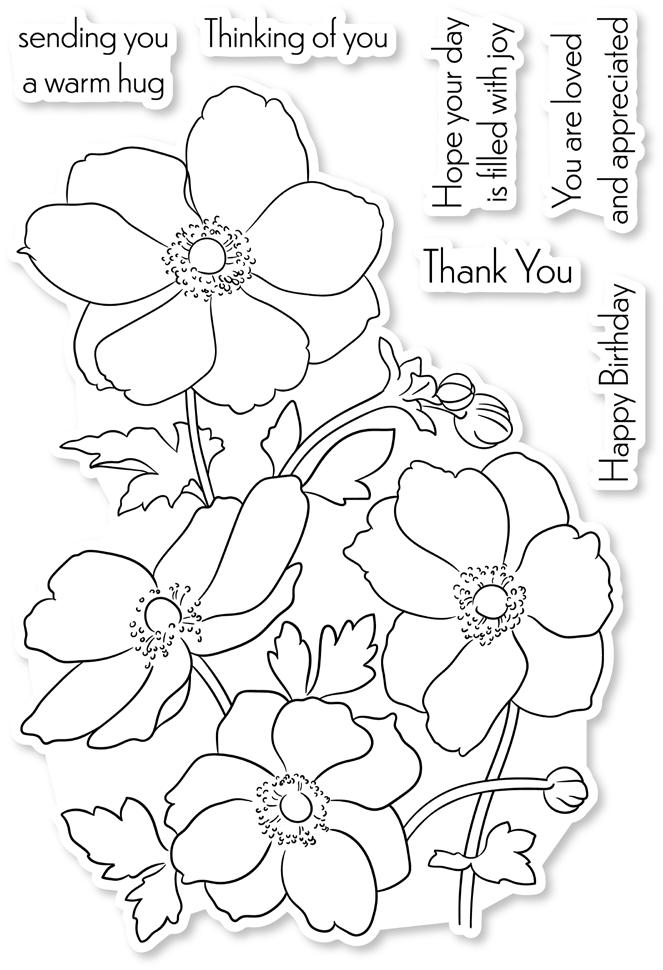 Japanese Anemones are a popular garden flower known for their striking blooms and lush foliage. This set features a collection of 4 delicate & intricately detailed flowers, capturing the essence of the Japanese Anemone. In addition to the illustrations, the stamp set also contains 6 sentiments that are perfect for everyday cards.