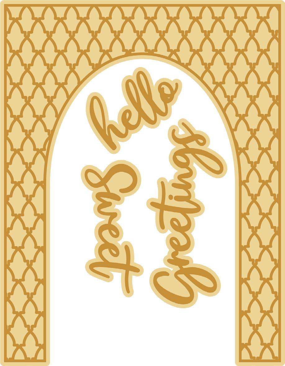 Inspired by the popular Moroccan trellis patterns, Spark Joy: Sweet Greetings Hot Foil Plate features a beautiful arched doorway/window-like pattern, along with two versatile sentiments - “hello” & “sweet greetings!”