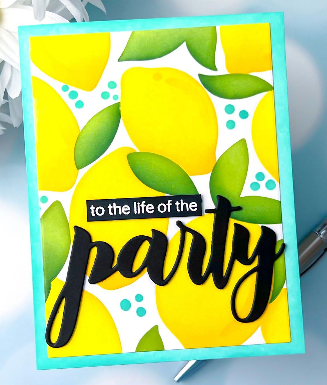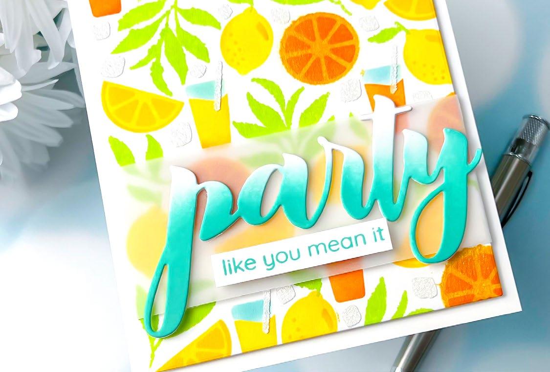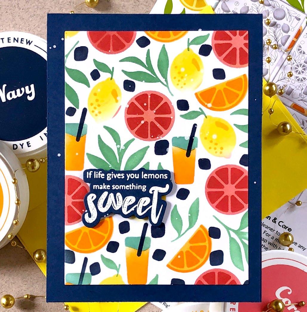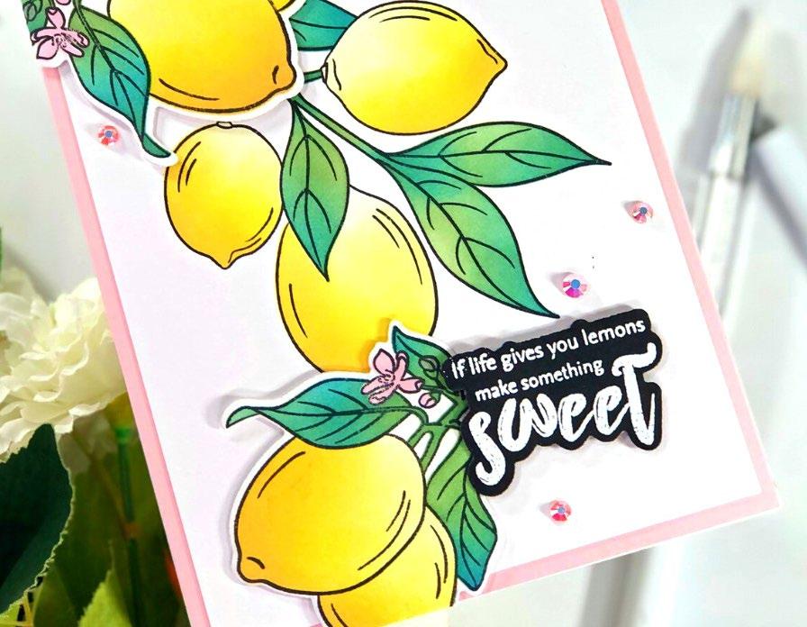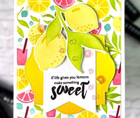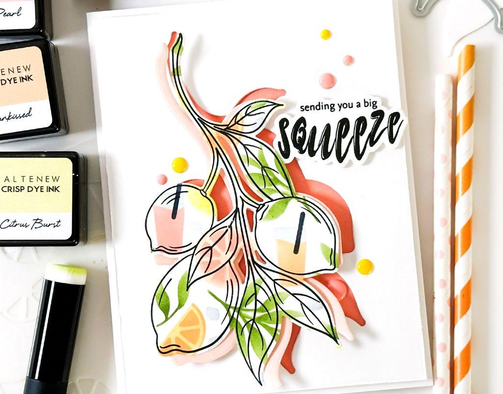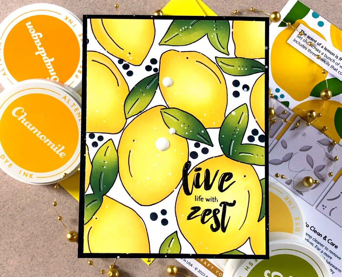 Embrace the sunny days with limes and lemons, and let their citrusy charm transport you to a world of summertime bliss. Imagine sipping on tangy lemonade or indulging in zesty limeinfused treats while basking in the warm sun. Altenew’s Lemonade Party Ensemble evokes feelings of relaxation and rejuvenation. Whether it’s decorating your space with lemon themed decor, enjoying citrus-inspired recipes, or incorporating these fruits into your crafts, this ensemble encapsulates the joy and zest of the sunny season.