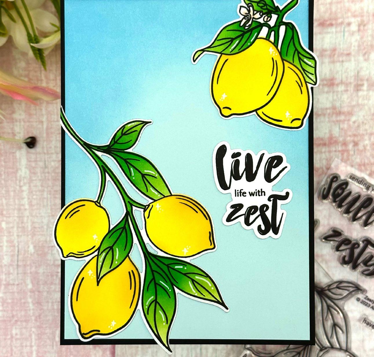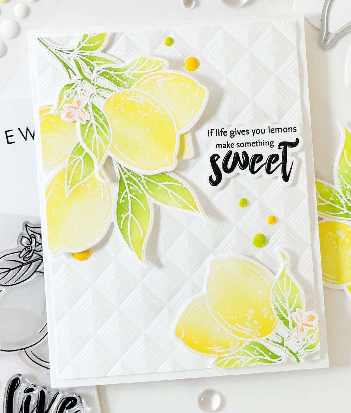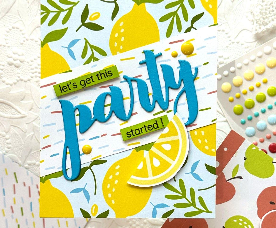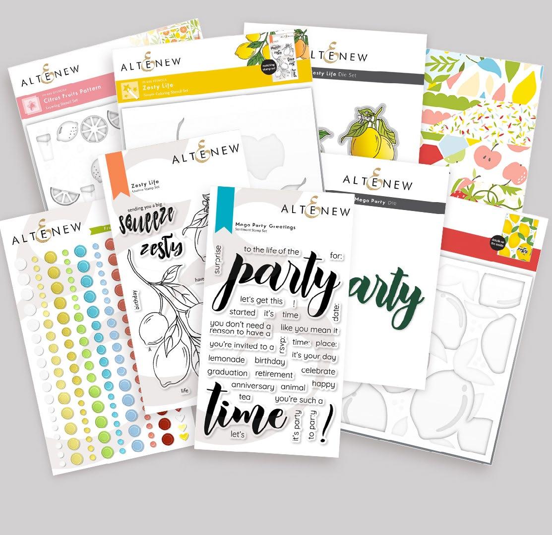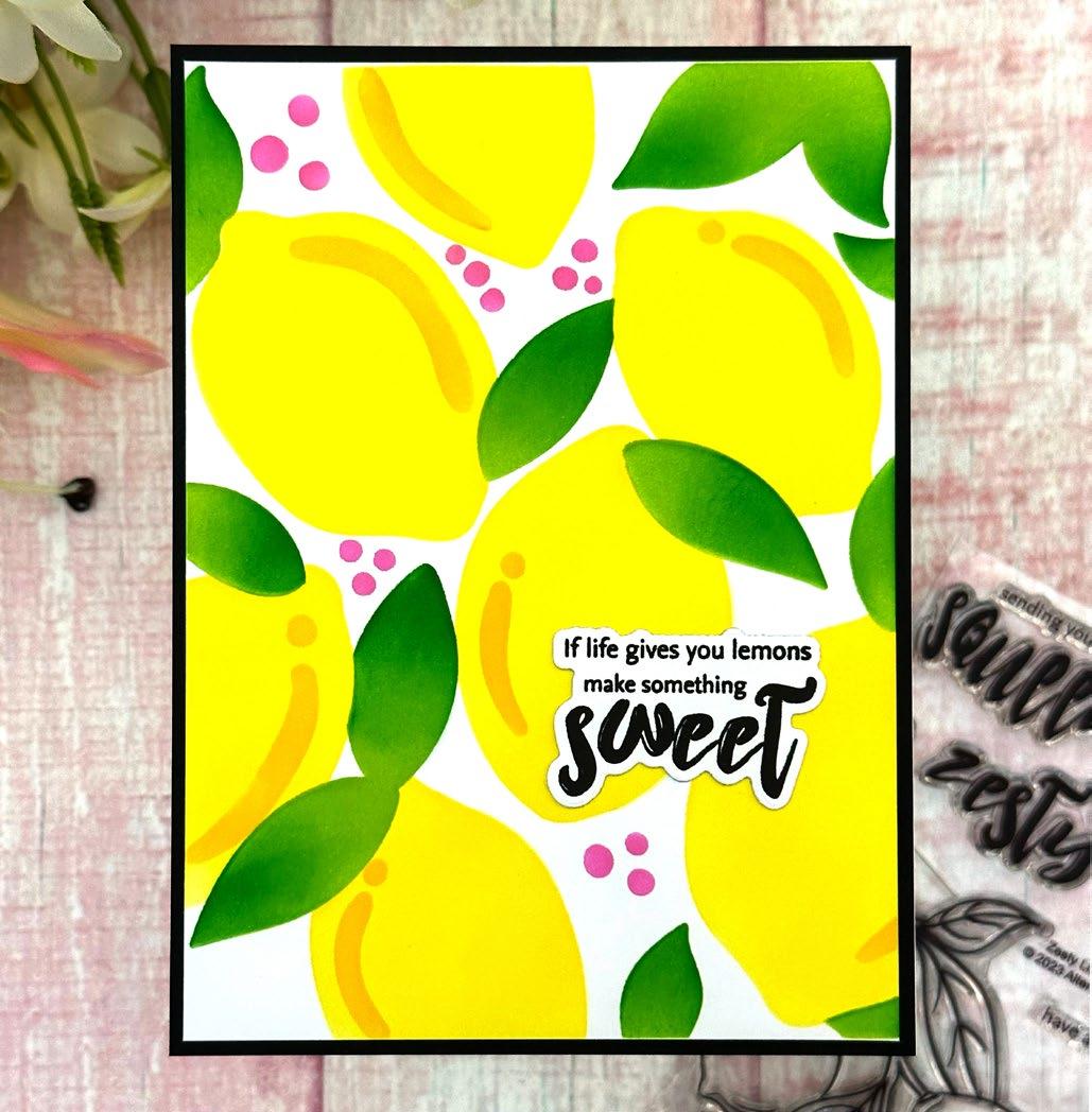 Embrace the sunny days with limes and lemons, and let their citrusy charm transport you to a world of summertime bliss. Imagine sipping on tangy lemonade or indulging in zesty limeinfused treats while basking in the warm sun. Altenew’s Lemonade Party Ensemble evokes feelings of relaxation and rejuvenation. Whether it’s decorating your space with lemon themed decor, enjoying citrus-inspired recipes, or incorporating these fruits into your crafts, this ensemble encapsulates the joy and zest of the sunny season.