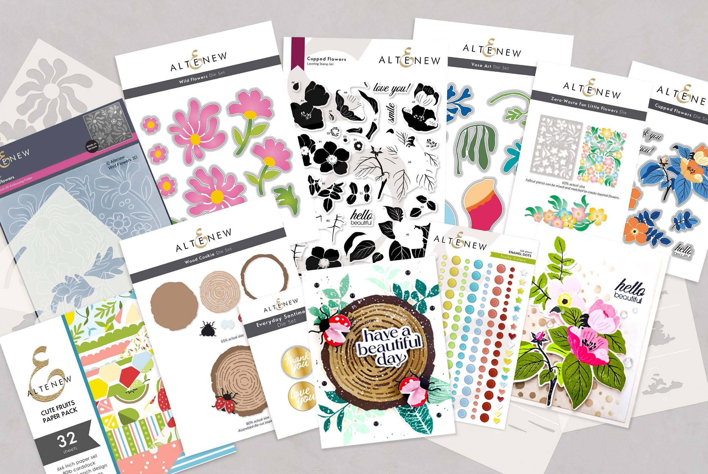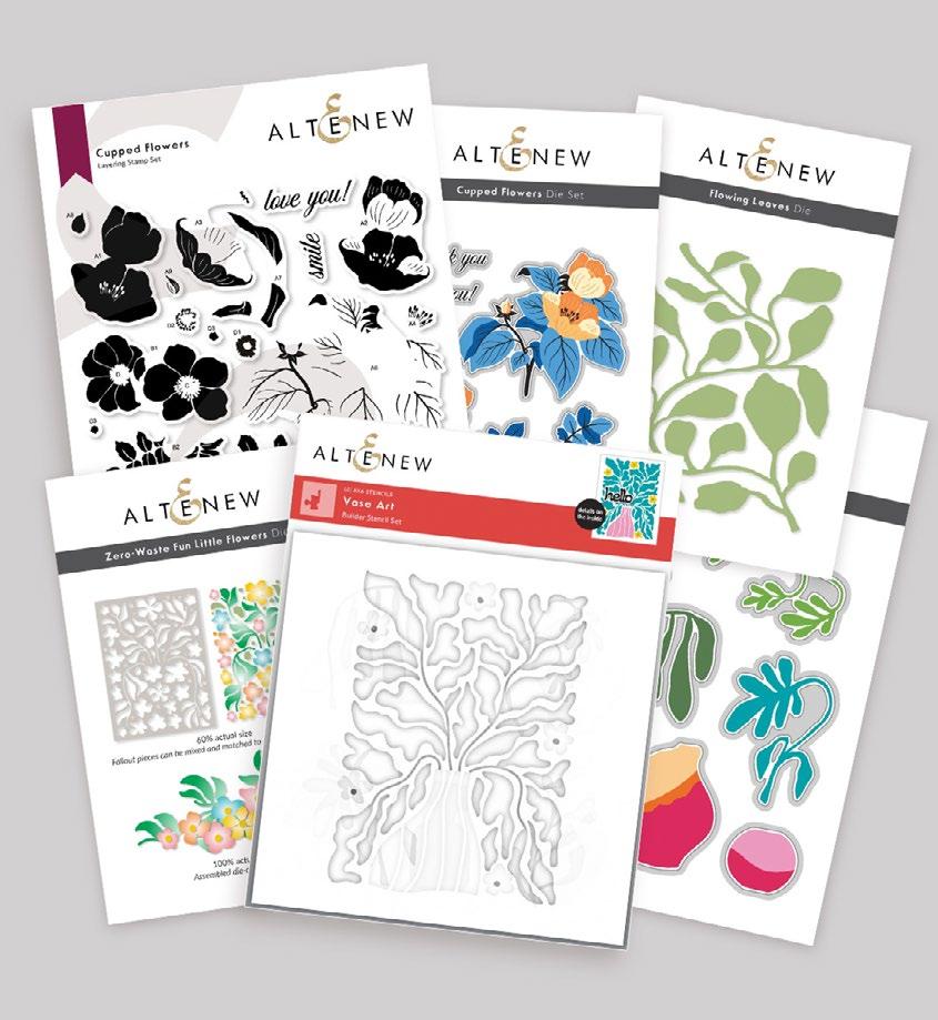 Altenew’s Flowing Art Ensemble is a creative collection featuring minimalist-style sweet buttercups, a graceful flowing leaves die, a whimsical fun little flowers die from our ever popular Zero-Waste die series, and a versatile vase art builder stamp and die set. This ensemble allows crafters to explore their creativity and create stunning floral designs with ease.