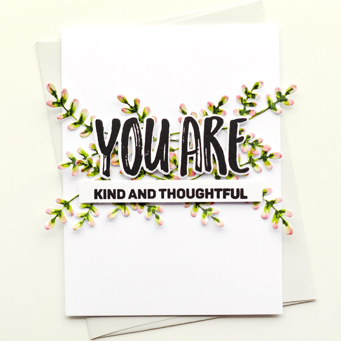 5. Stamp the “you are” from the You Are Everything Stamp Set on a piece of white cardstock using Obsidian Ink.