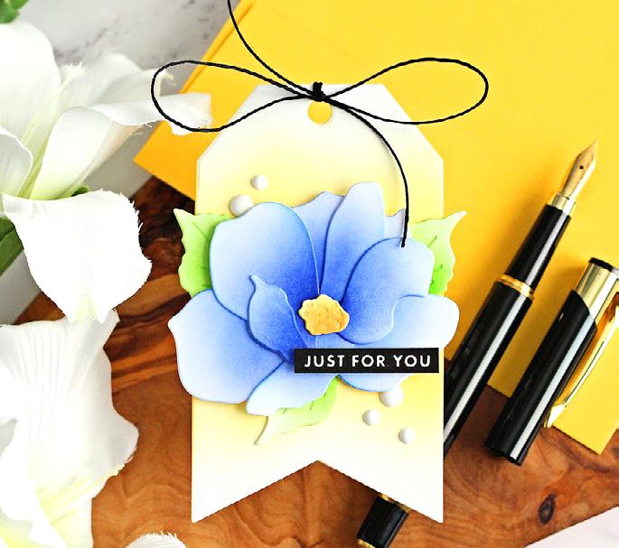 8. Adhere the vellum die-cut to the tag and cut off the excess of the stem.