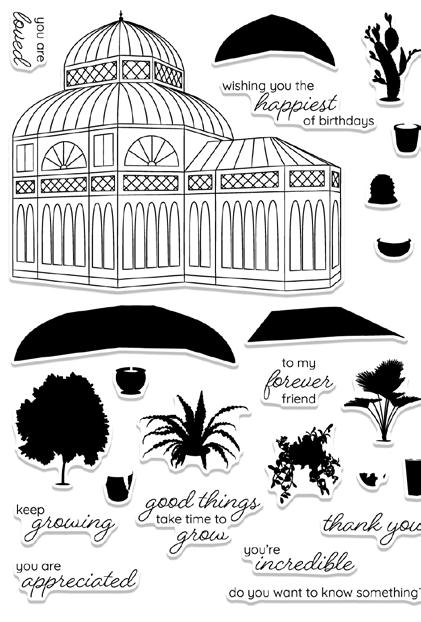 8. Re-stamp the plants inside the greenhouse in Obsidian Ink.
