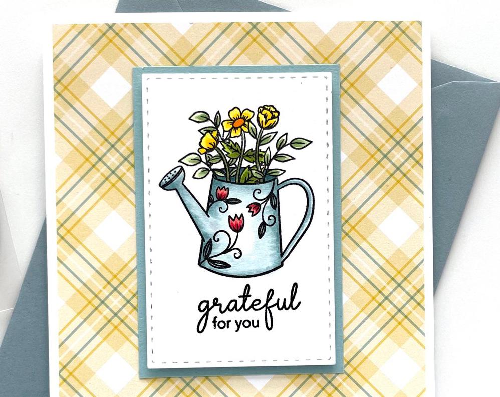 2. Stamp the image from Bouquet Basket Stamp Set on white cardstock with Permanent Black Ink.