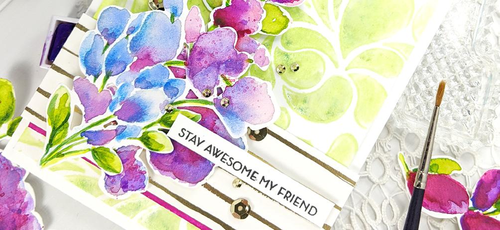 My reply may be similar to other crafters as I am sure most of us were inspired by Jennifer McGuire’s videos to buy Altenew products. But yes, it was her videos that helped me channel my creativity and since I am crazy about flowers, Altenew stamp sets were perfect for me. The Label Love and Painted Flowers Stamp Sets were the first Altenew products I purchased. I remember how delighted I was when I used the Vintage Flowers Layering Stamp Set as the images were so gorgeous and realistic; this had me hooked to Altenew stamps. My first blog hop as a guest designer with Altenew was in March 2021 and I was over the moon. It was a dream come true for me.