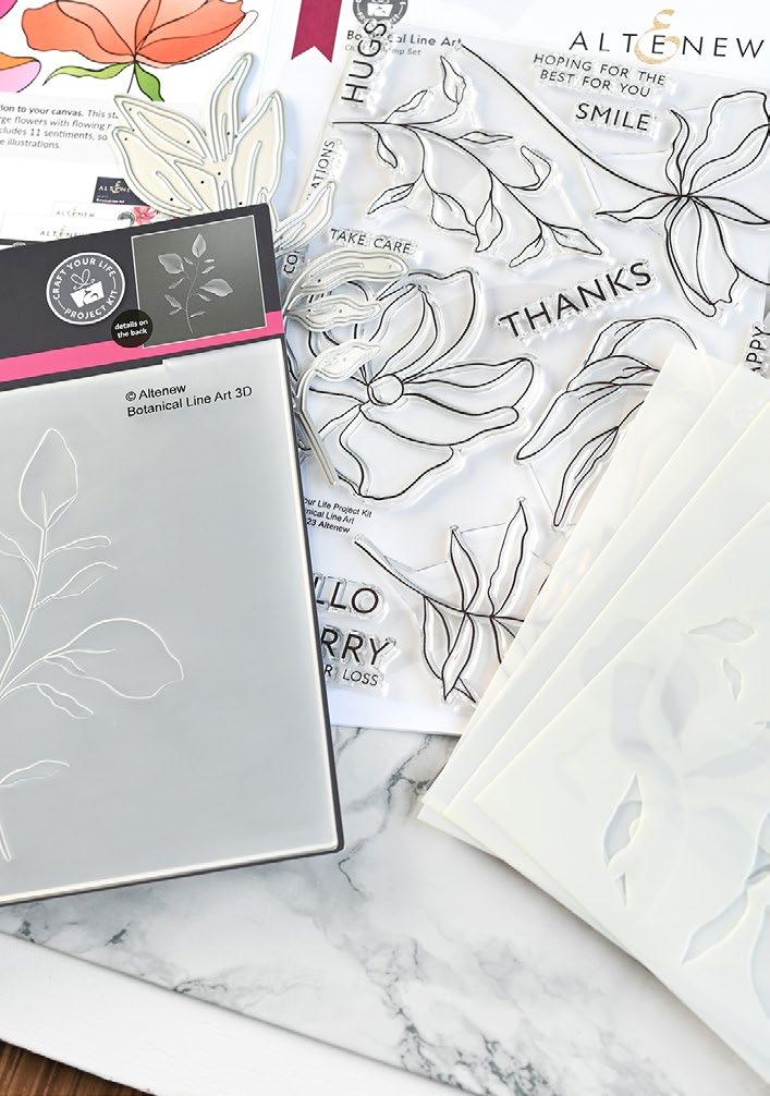 Add some artistic flair & simple sophistication to your canvas. This stamp set features botanical line art elements, including two large flowers with flowing petals and three branches of organicshaped leaves. It also includes 11 sentiments, some of which feature bold fonts to complement the delicate illustrations.