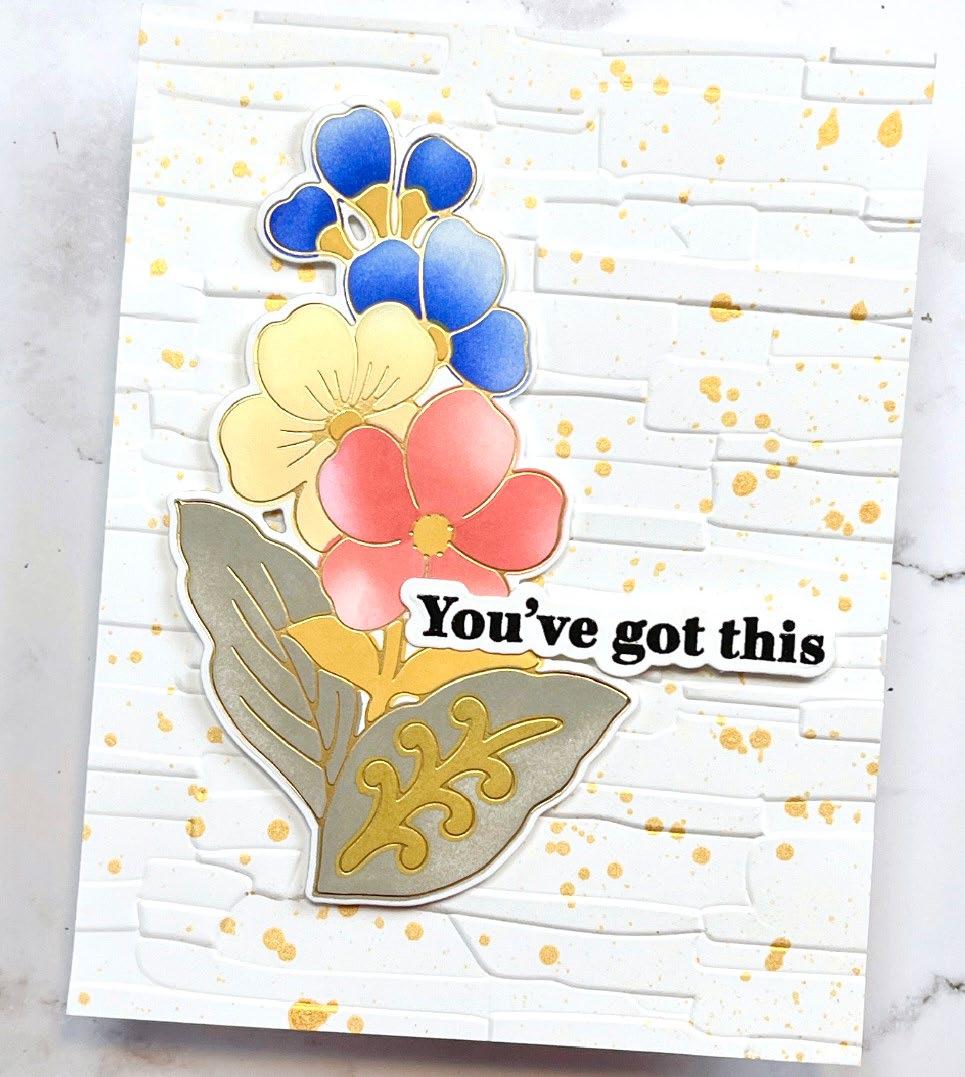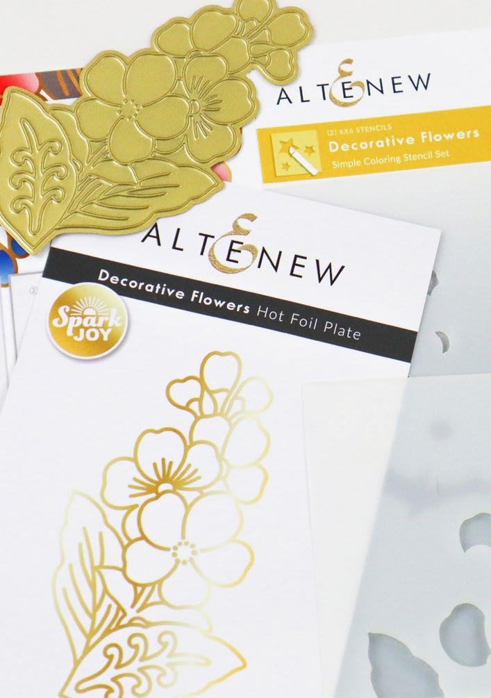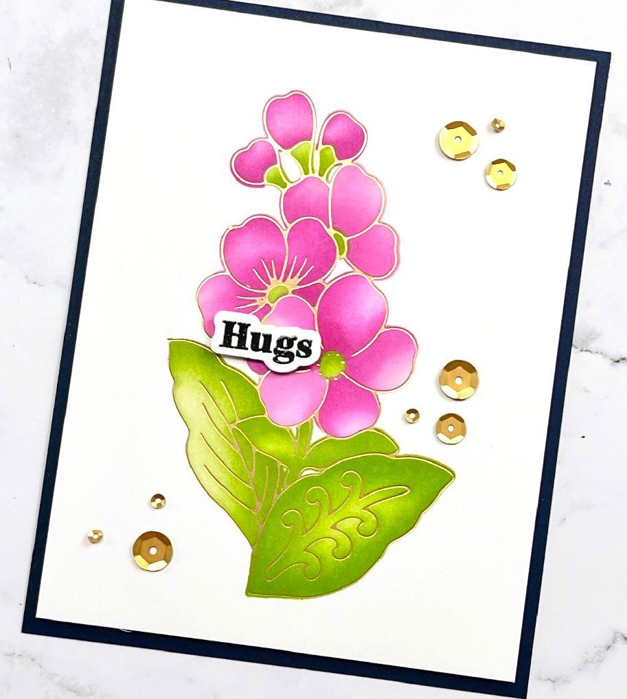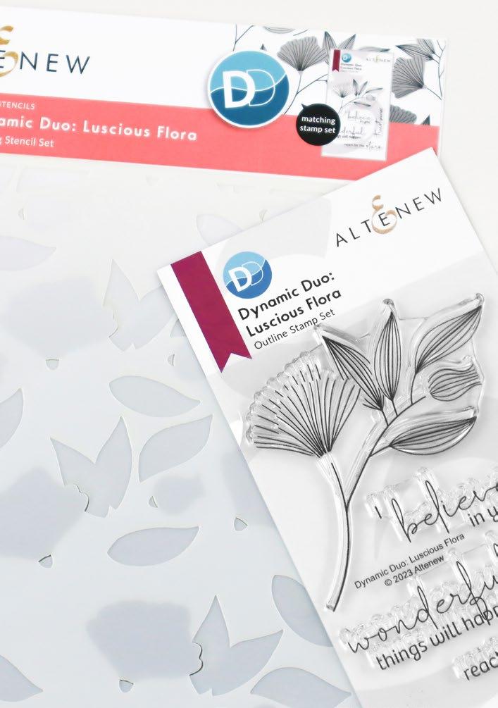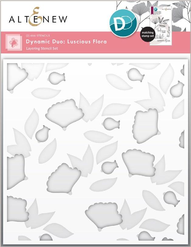 This stamp set provides the detail layer for the gorgeous floral background in the stencil set. In addition, four sentiments with a modern pairing of fonts will help you add the finishing touch to your projects.