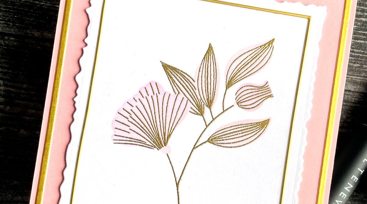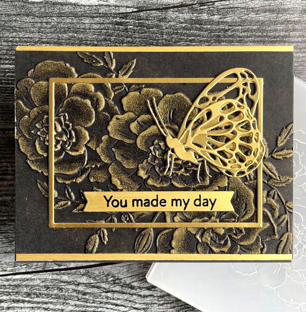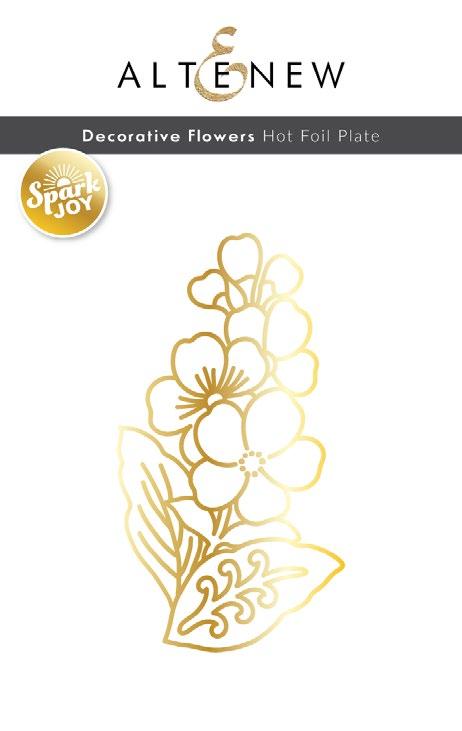 Do you want to enhance your projects with some dainty, eye-catching blooms? This hot foil plate showcases a delicate floral arrangement featuring bold blossoms and decorative leaves.