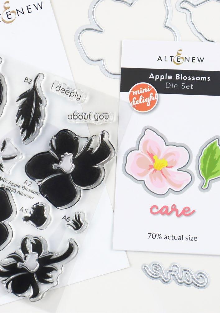 This stamp and die set honors the beauty of the season with an open apple blossom, a leaf, and a collection of caring sentiments. The layers are simple to line up, making them perfect for beginners or experienced crafters alike!