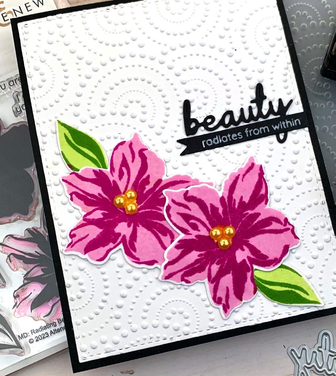 Celebrate the radiating beauty of your loved ones! Featuring an easy-to-layer flower with an accompanying leaf and sentiments, this set will be the perfect addition to your collection. Use your favorite ink colors to make it come to life on paper!