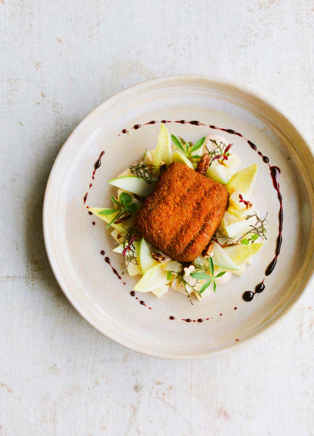Een variant voor de herfst: aardappelkroketten met hazelnoot.