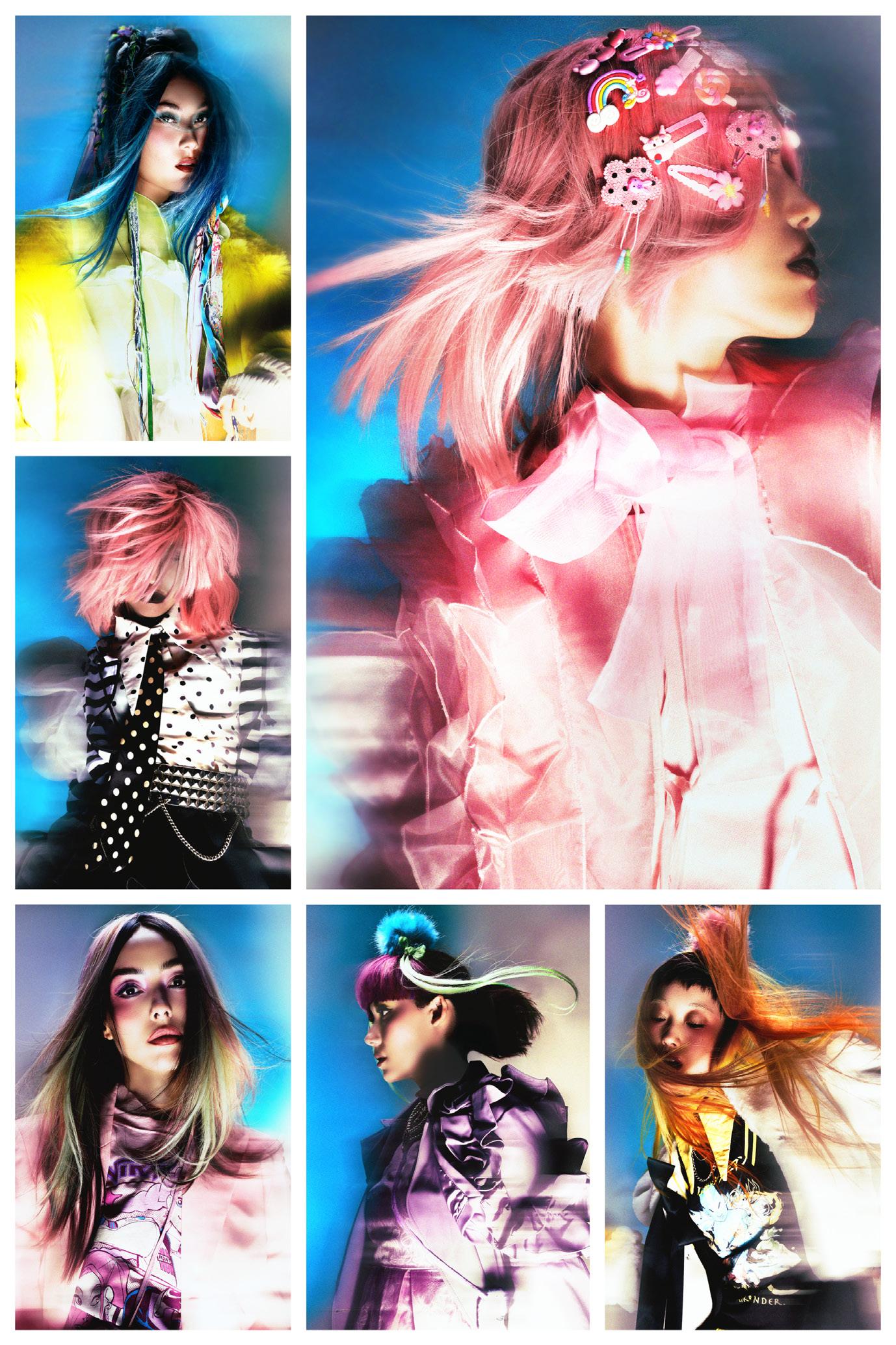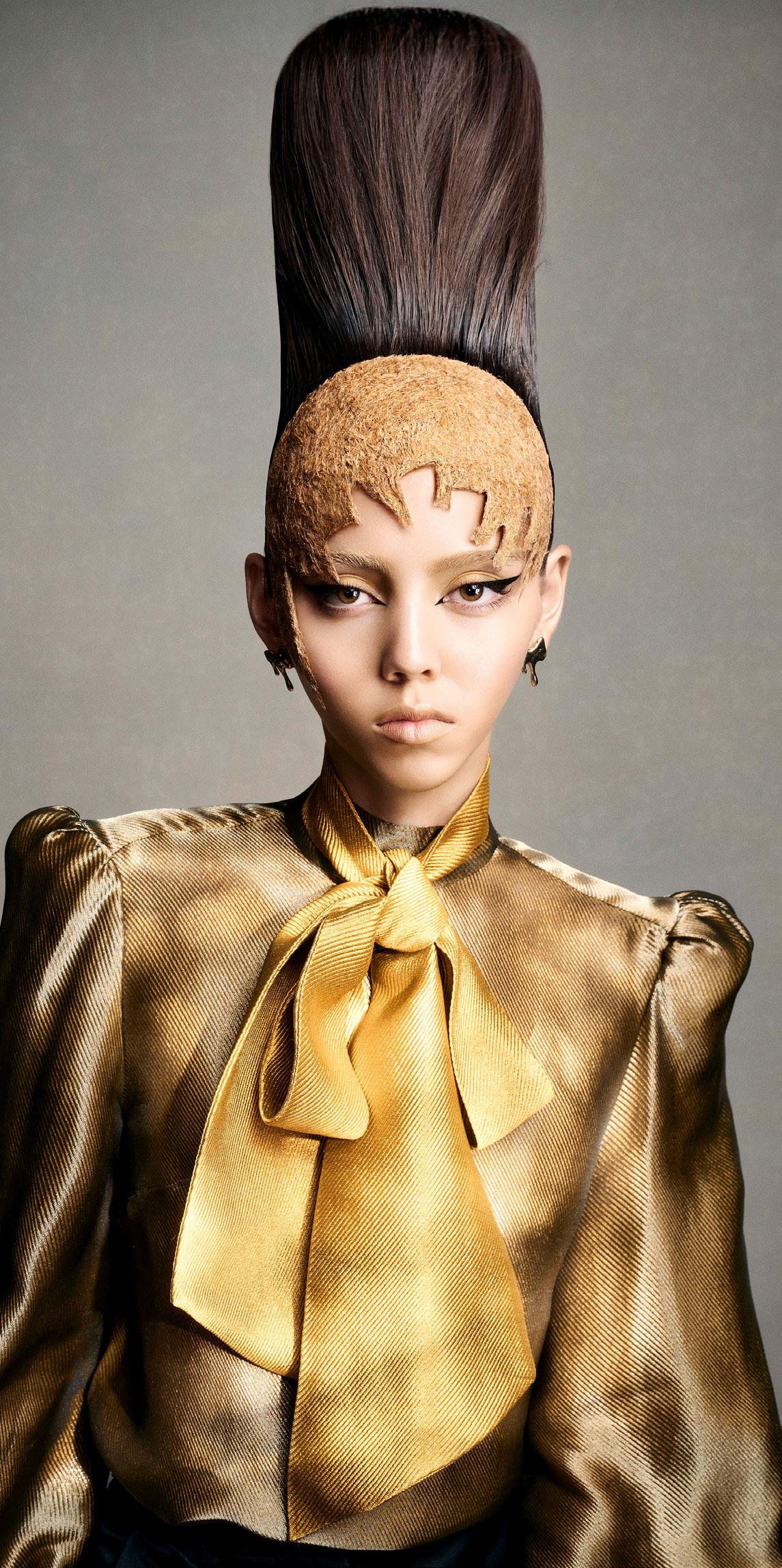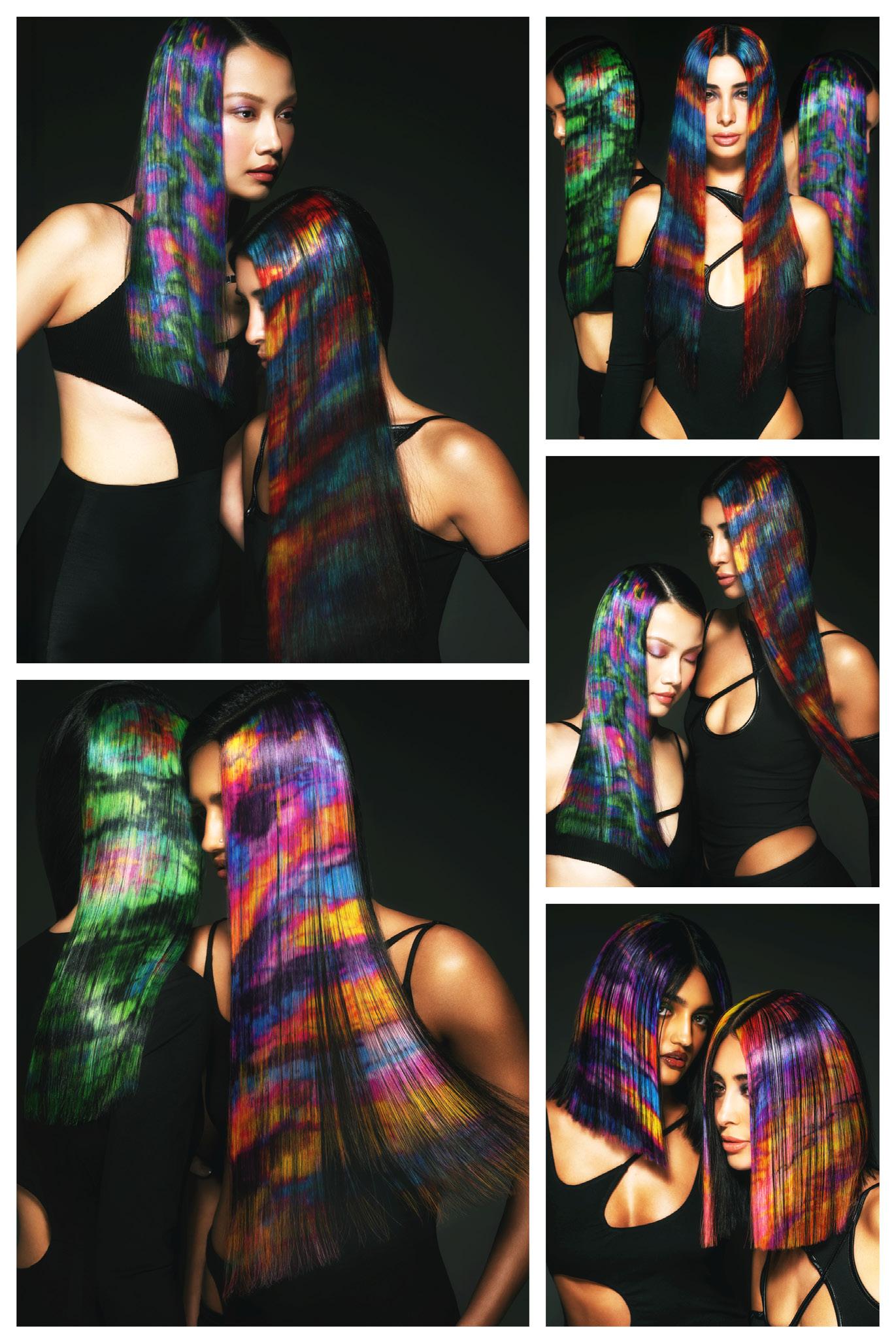 Fotografiado con la energía de un concierto nocturno, cada look canaliza el espíritu del britpop y el glamour grunge, rebosando confianza. Este es un tributo a los rebeldes y transgresores; piensa en belleza desenfadada, elegancia cruda e individualidad sin complejos. Esto es cabello, amplificado.”