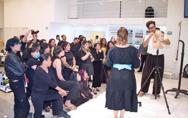 El ARTIST TEAM , integrado por Juan Laguna, Lupita Acosta y Pamela Álvarez, presentó tendencias inspiradas en Pantone, con énfasis en ondas suaves, cortes bob y estilizados versátiles.