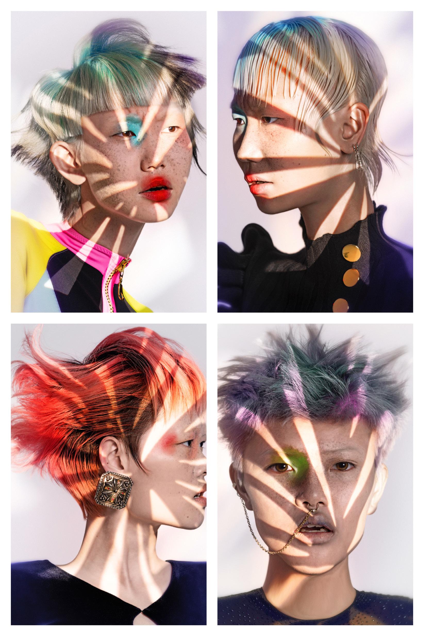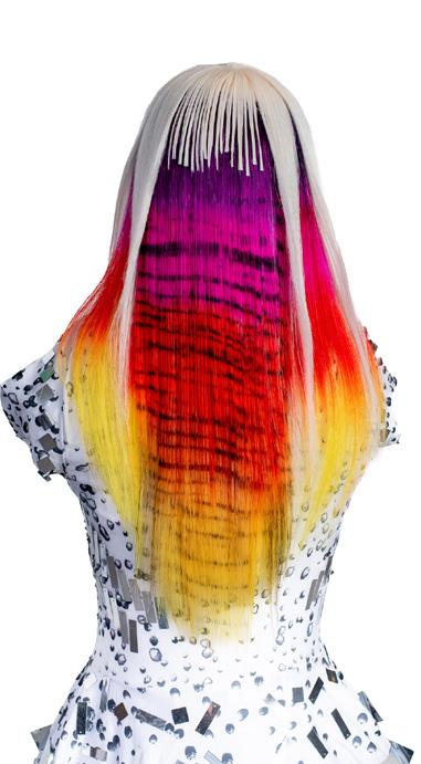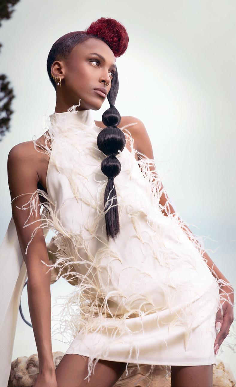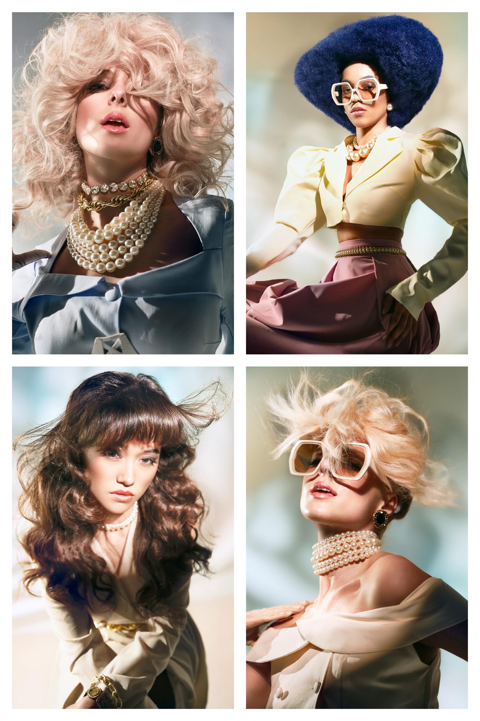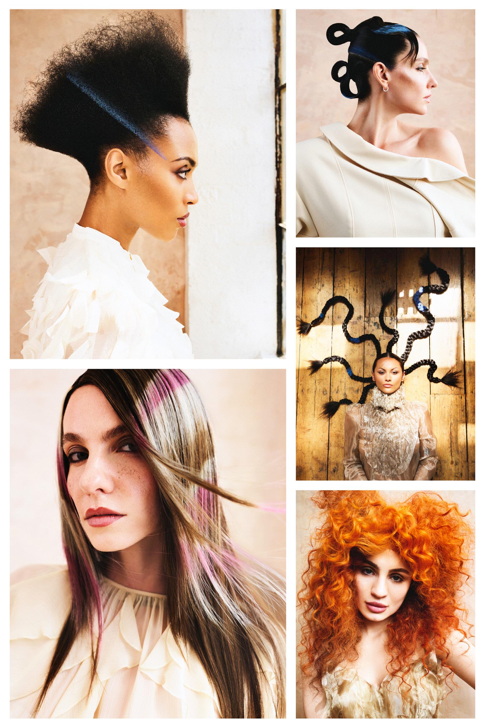 punto de partida, pero traduje cada idea en cabello real que pudiera moverse, fluir y mantener su forma. Cada modelo se preparó con texturas específicas y una colocación a medida para crear siluetas que se sienten modernas pero no alienígenas, futuristas pero humanas.
