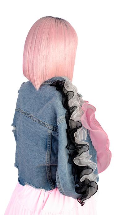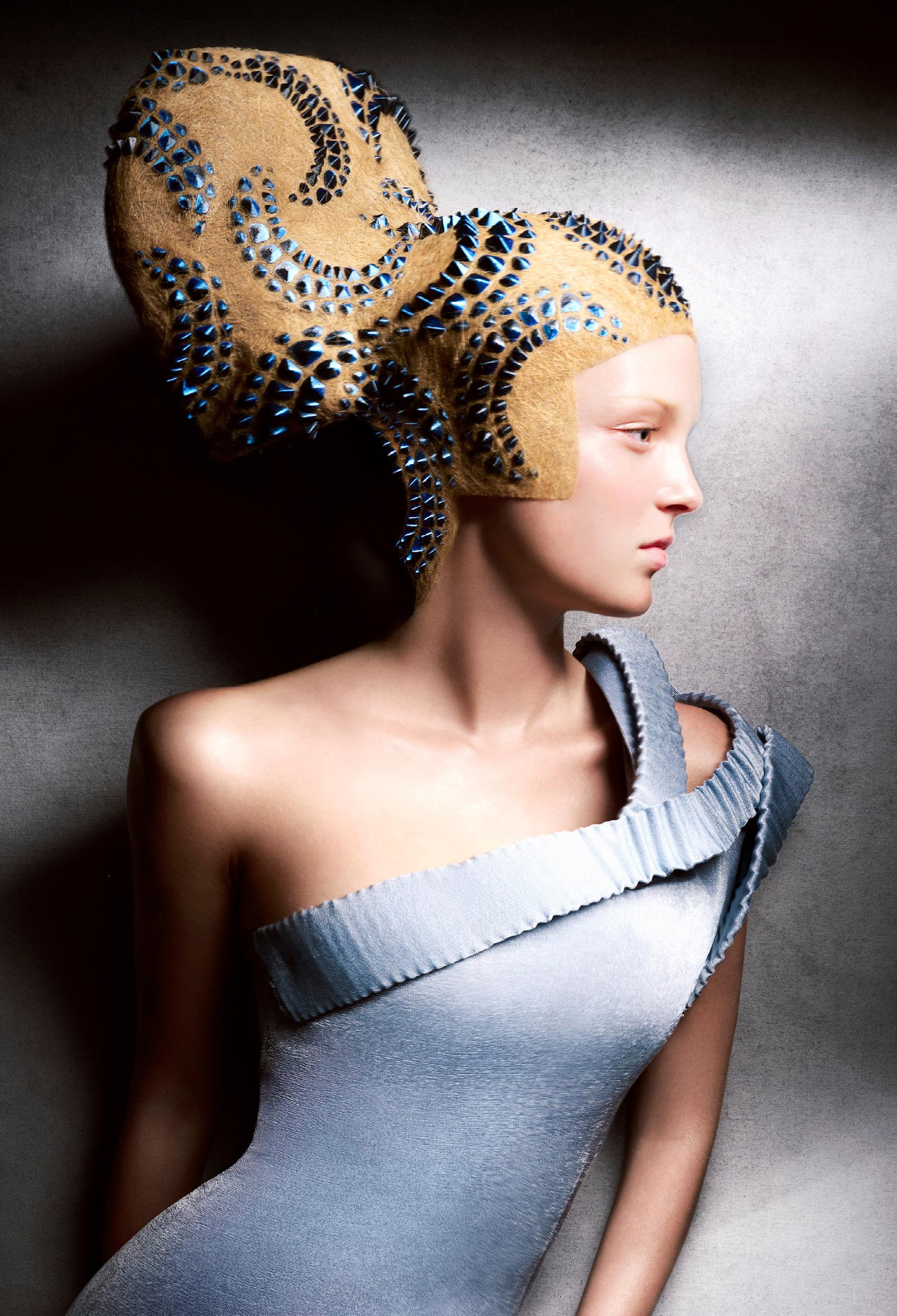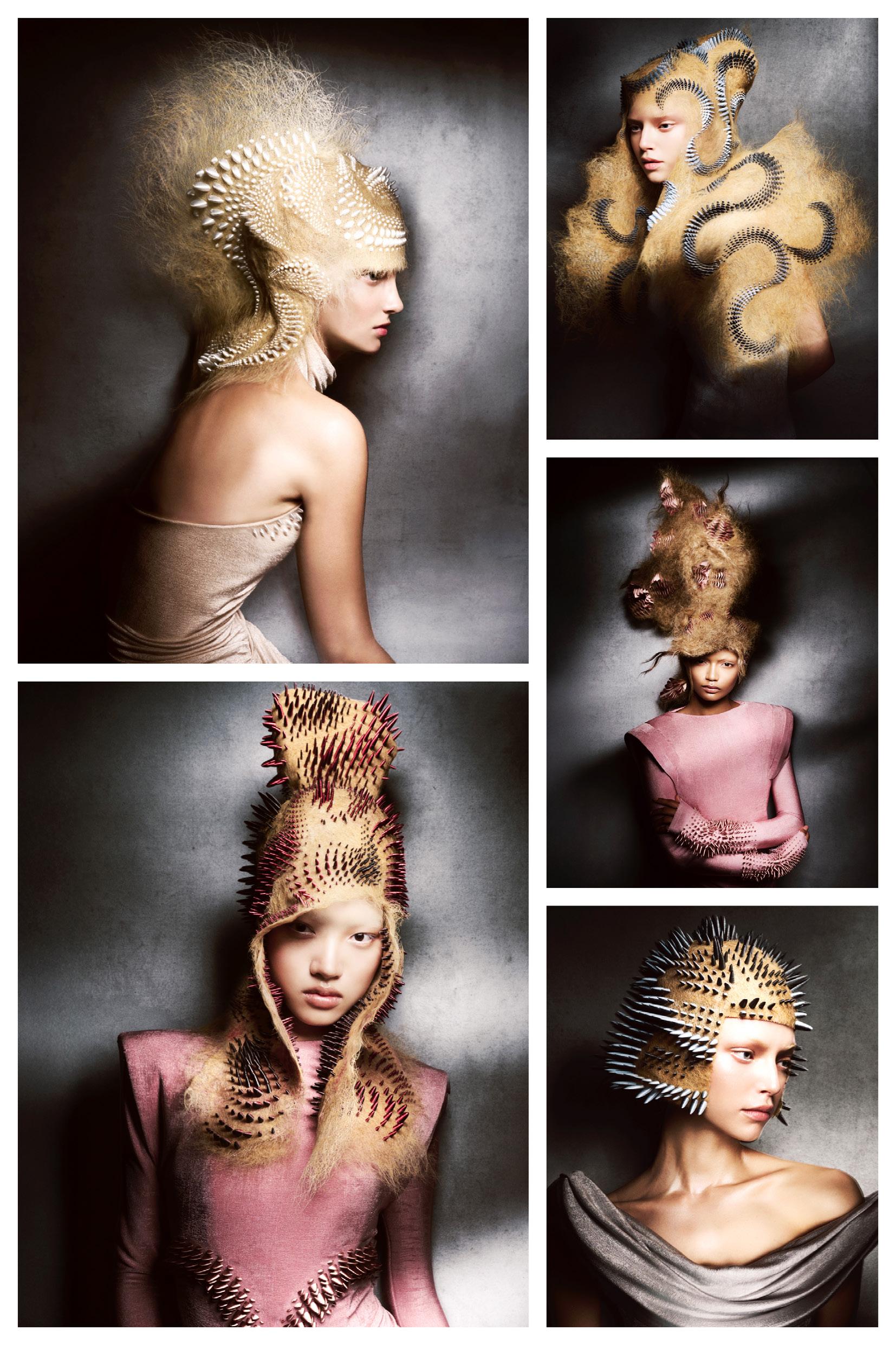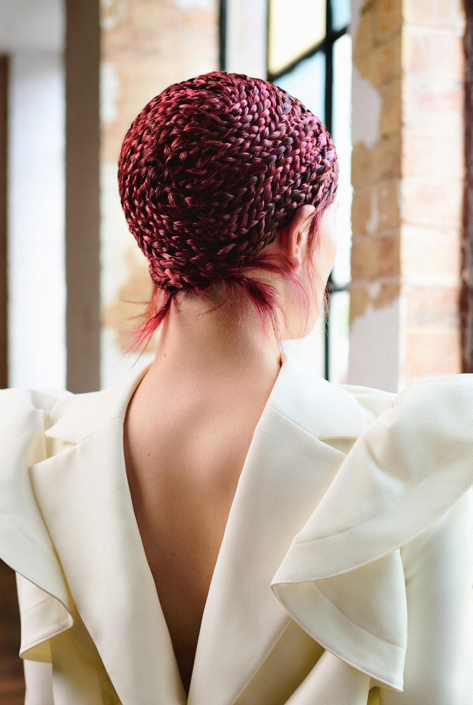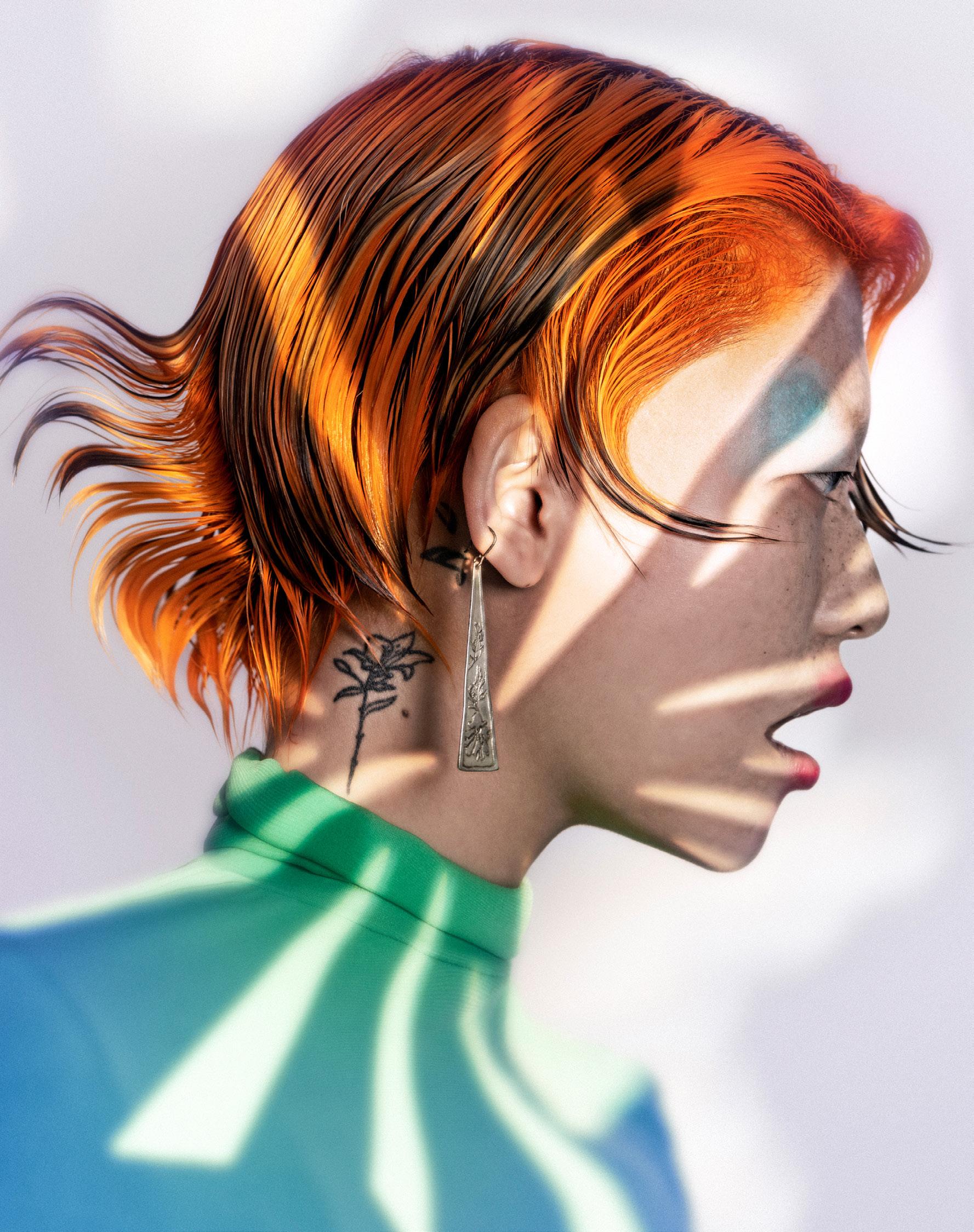 punto de partida, pero traduje cada idea en cabello real que pudiera moverse, fluir y mantener su forma. Cada modelo se preparó con texturas específicas y una colocación a medida para crear siluetas que se sienten modernas pero no alienígenas, futuristas pero humanas.