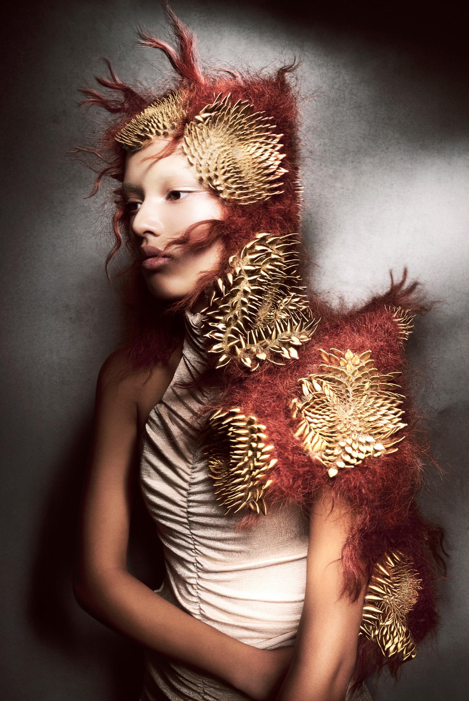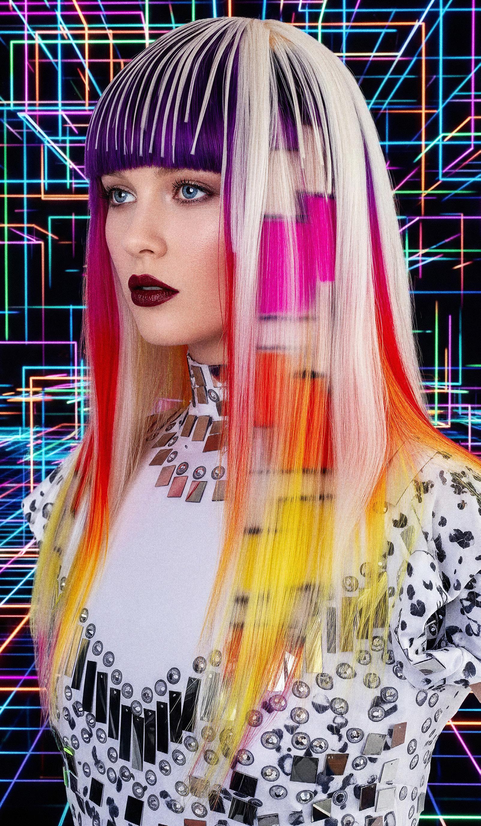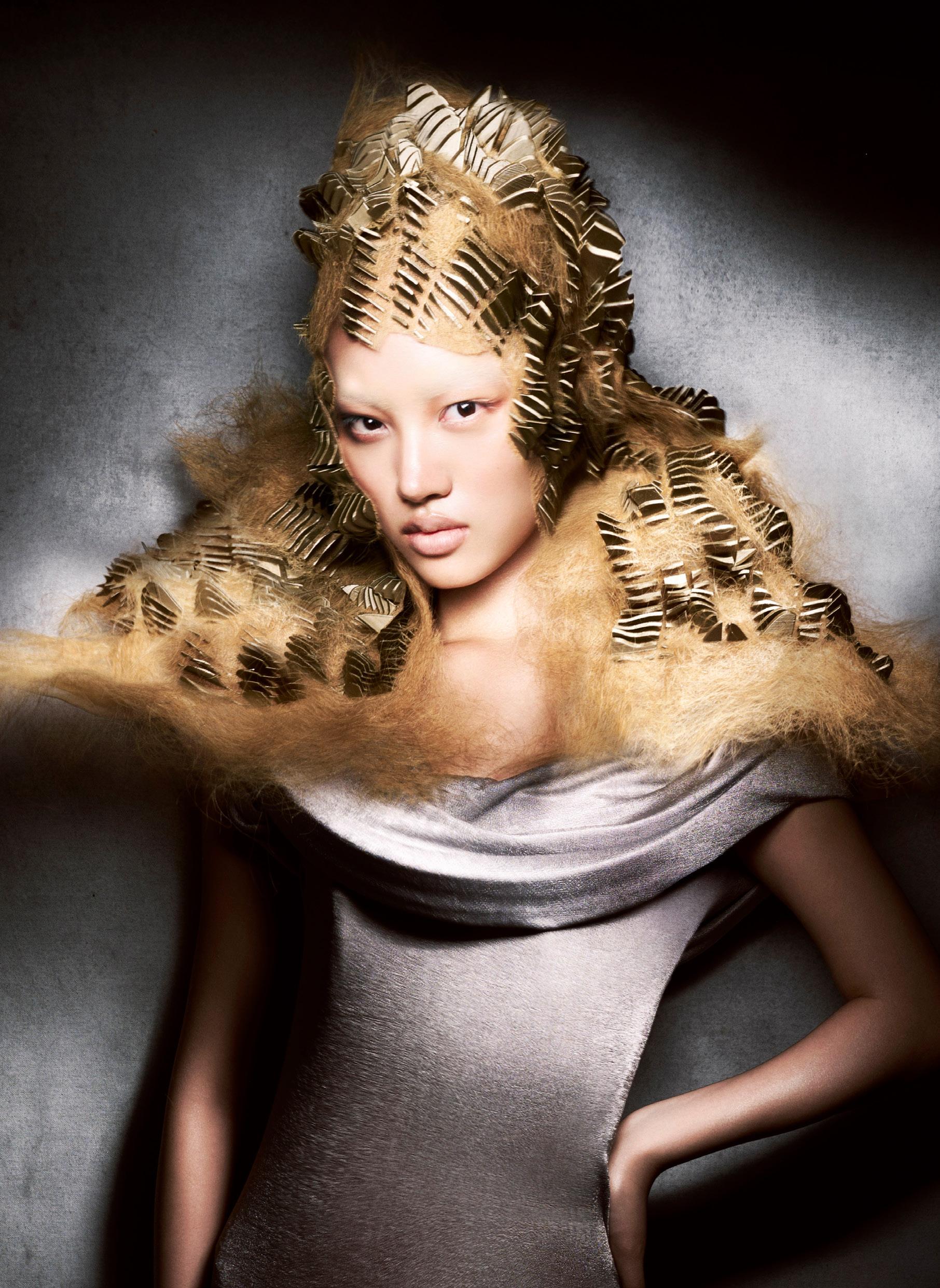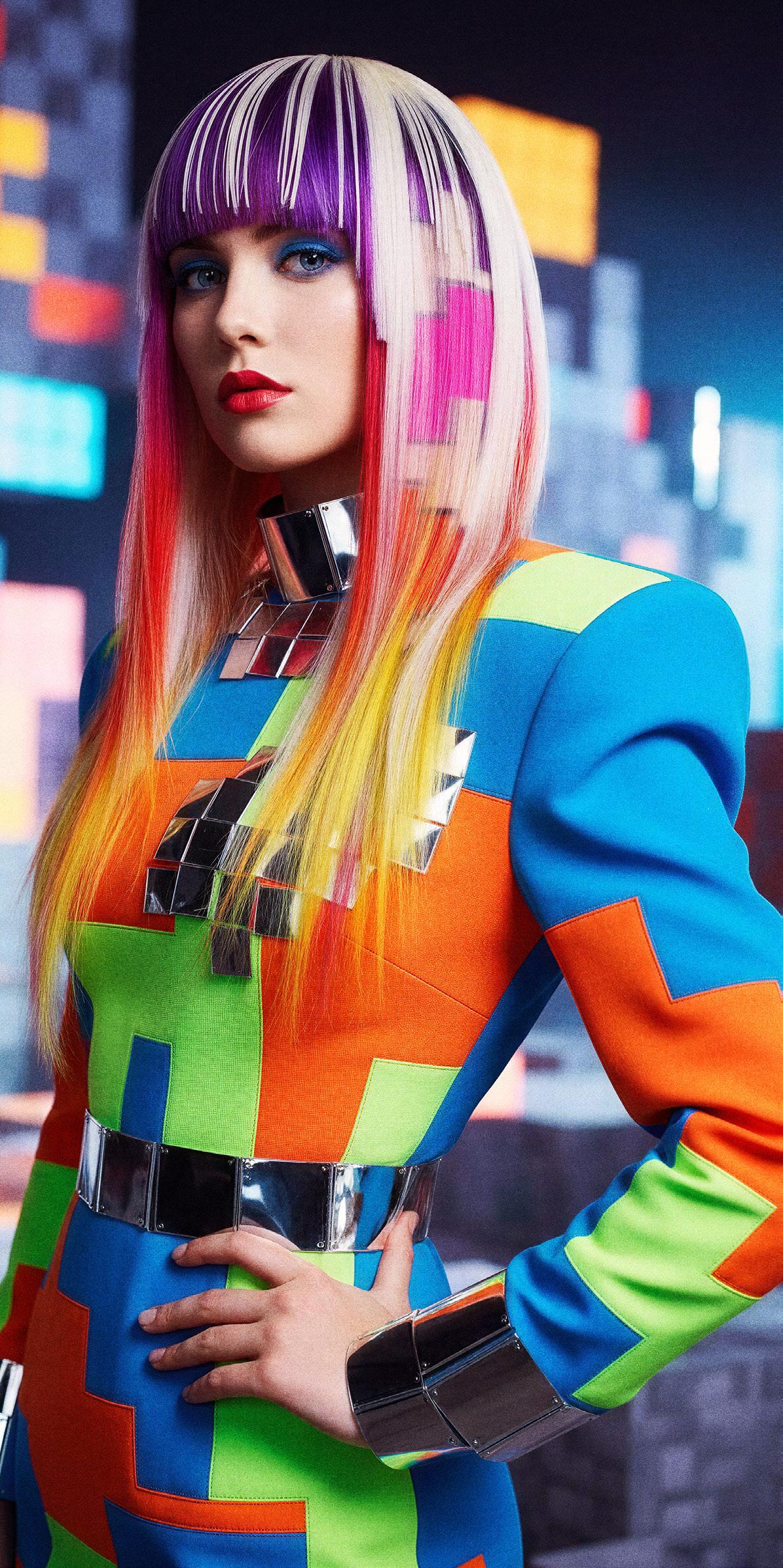 punto de partida, pero traduje cada idea en cabello real que pudiera moverse, fluir y mantener su forma. Cada modelo se preparó con texturas específicas y una colocación a medida para crear siluetas que se sienten modernas pero no alienígenas, futuristas pero humanas.