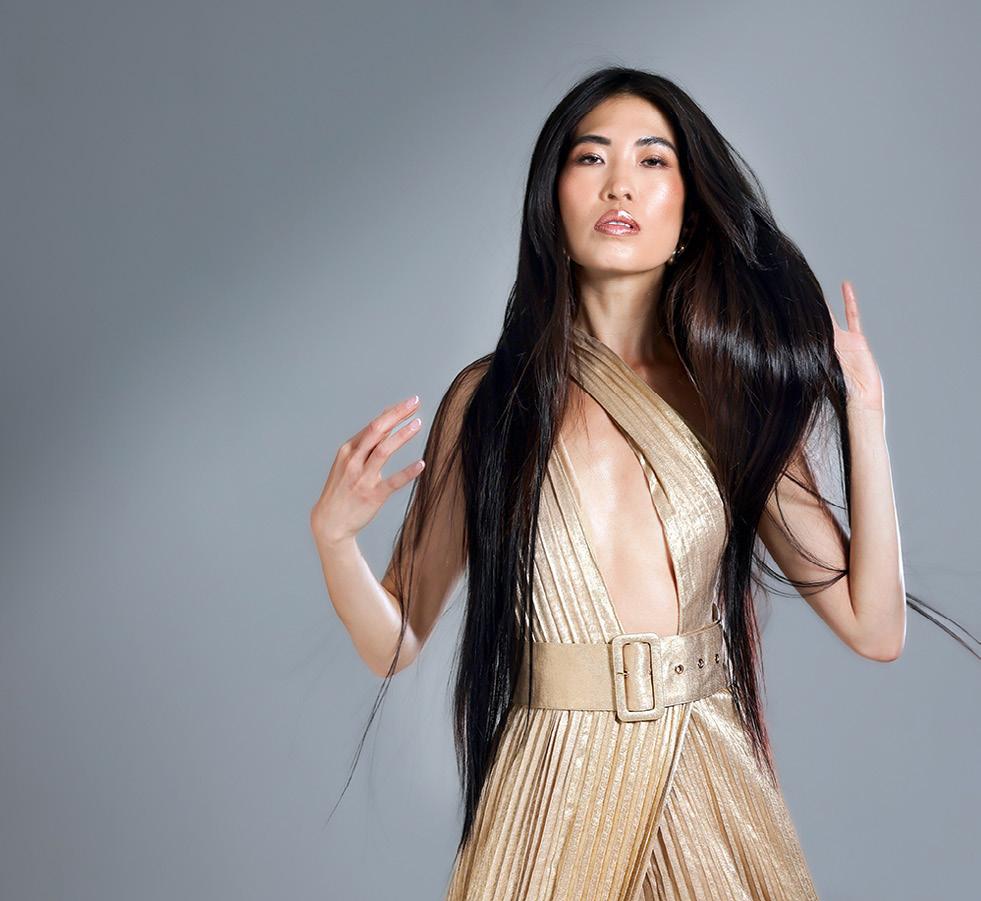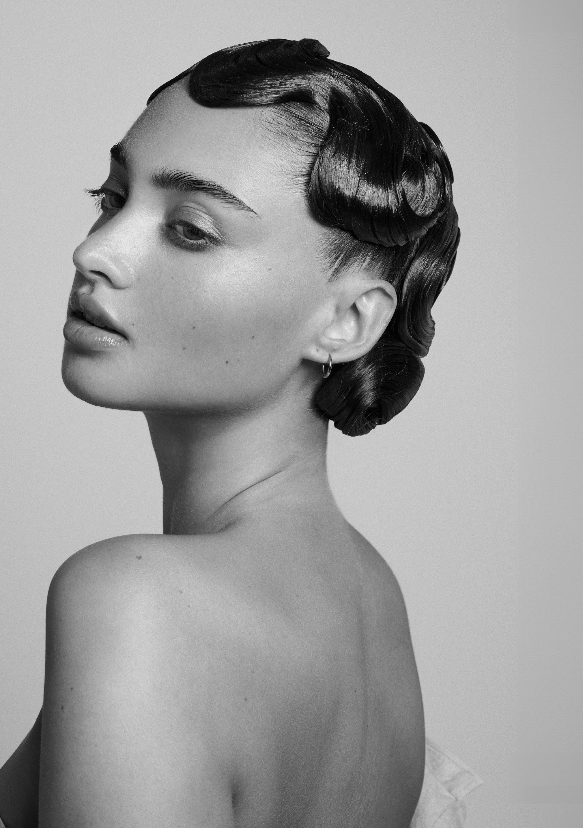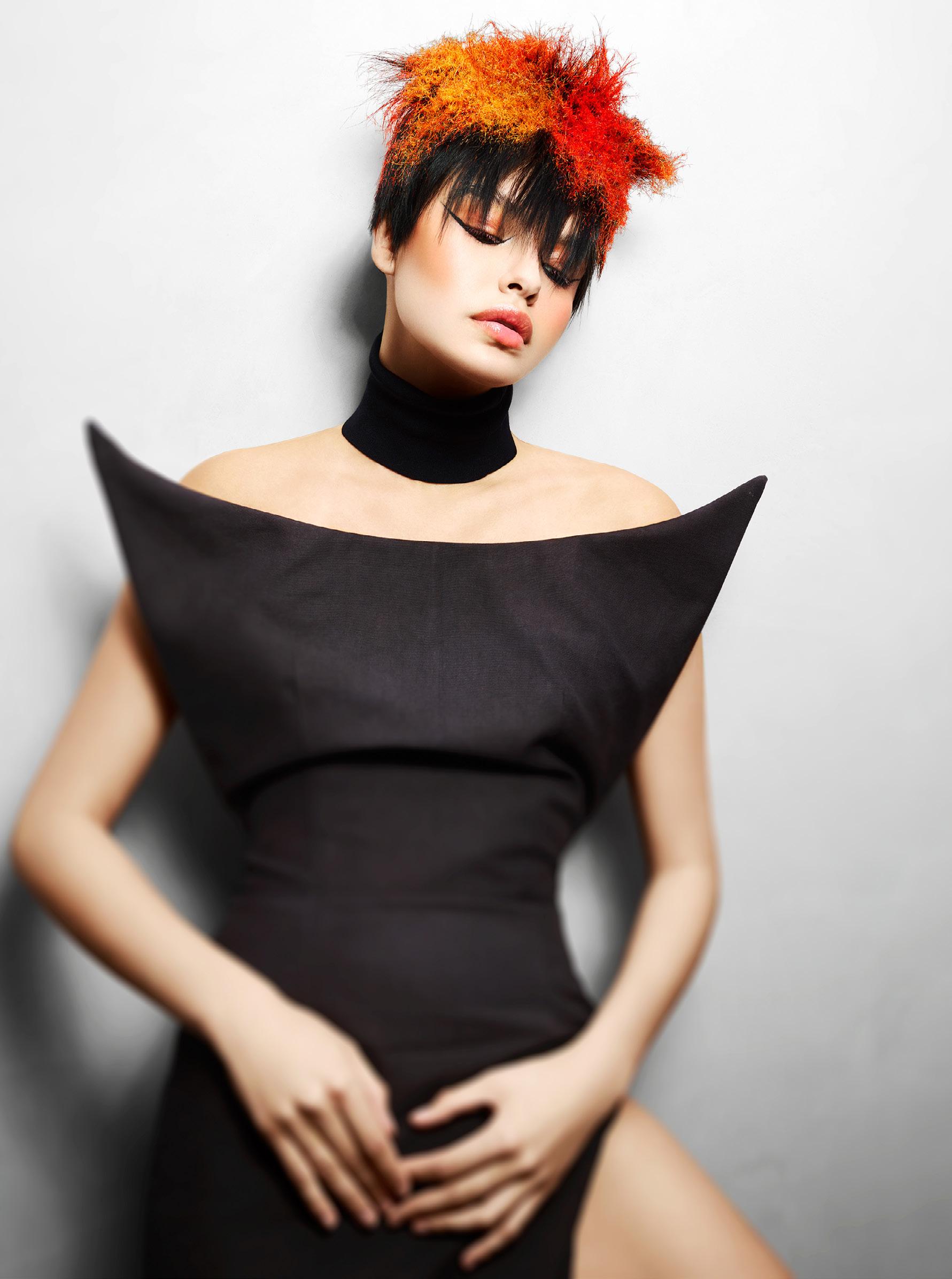 Modulux es una colección que nace de la fusión entre la visión de futuro y la disciplina técnica, con cada imagen diseñada para reflejar un equilibrio entre estructura y suavidad. El nombre fusiona lo modular y el lujo, evocando el concepto de crear formas capilares progresivas y adaptables que se sientan sofisticadas, llevables y con gran impacto editorial. Inspirada en conceptos generados por IA, utilicé la tecnología como