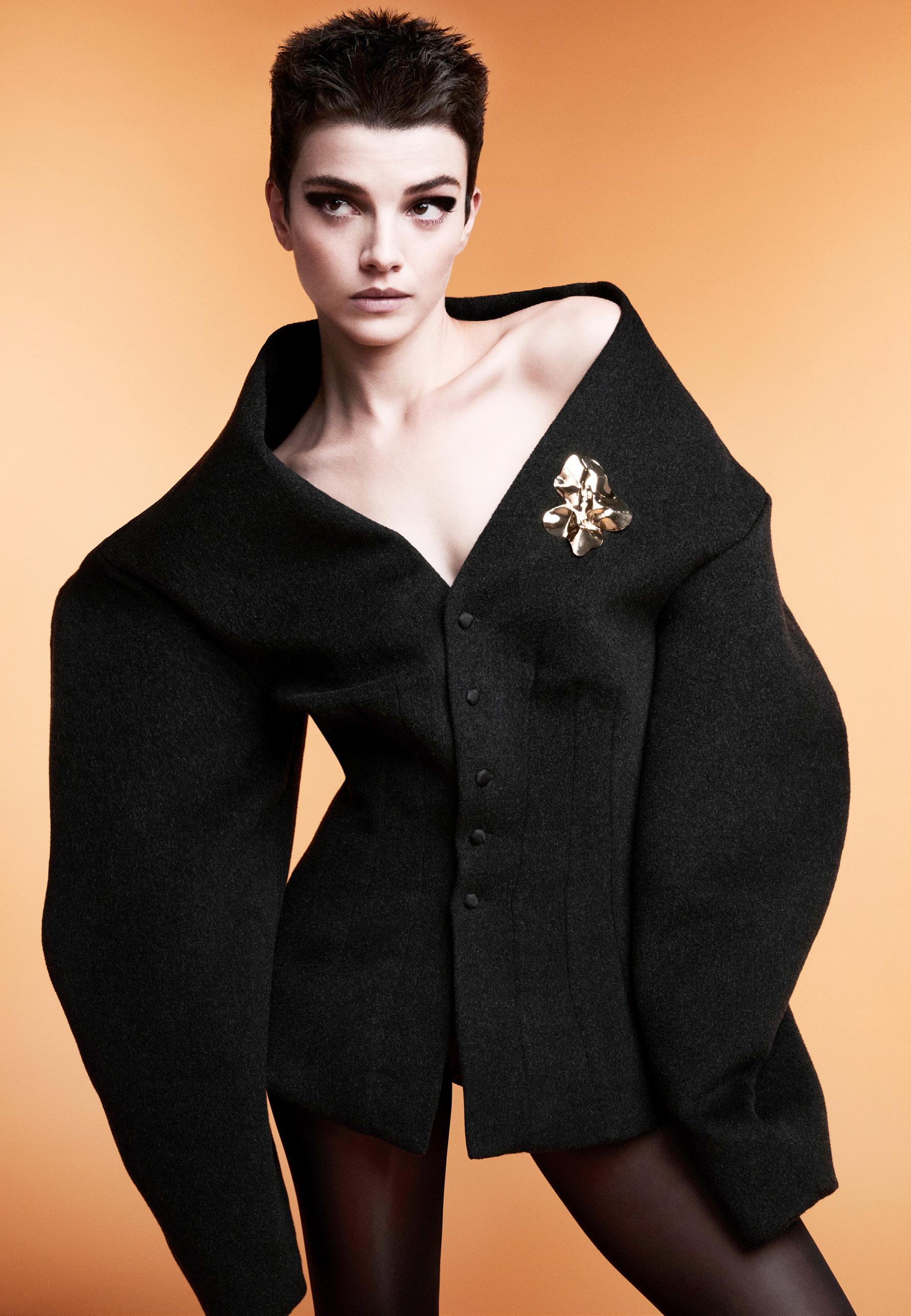 la luz y estructuras que narran historias sin palabras. Para vestir esta visión, nos acompaña la majestuosidad de MONAE cuya alta costura abraza la esencia de la colección con piezas que elevan cada look a un universo de sofisticación y arte.