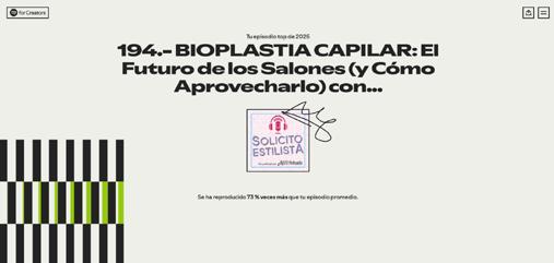 nueva, así como un incremento del 8% en seguidores, demostrando que la comunidad sigue creciendo y escuchando. El podcast traspasó fronteras, posicionándose con audiencia destacada en México, Estados Unidos, Argentina, España y Chile. Además, fue reconocido como un show digno de maratón en 2025, con un 91% más de reproducciones que otros podcasts, generando 2.6 veces más interacción, un 20% más de engagement, y colocando temas como la bioplastia capilar entre los más escuchados del año.