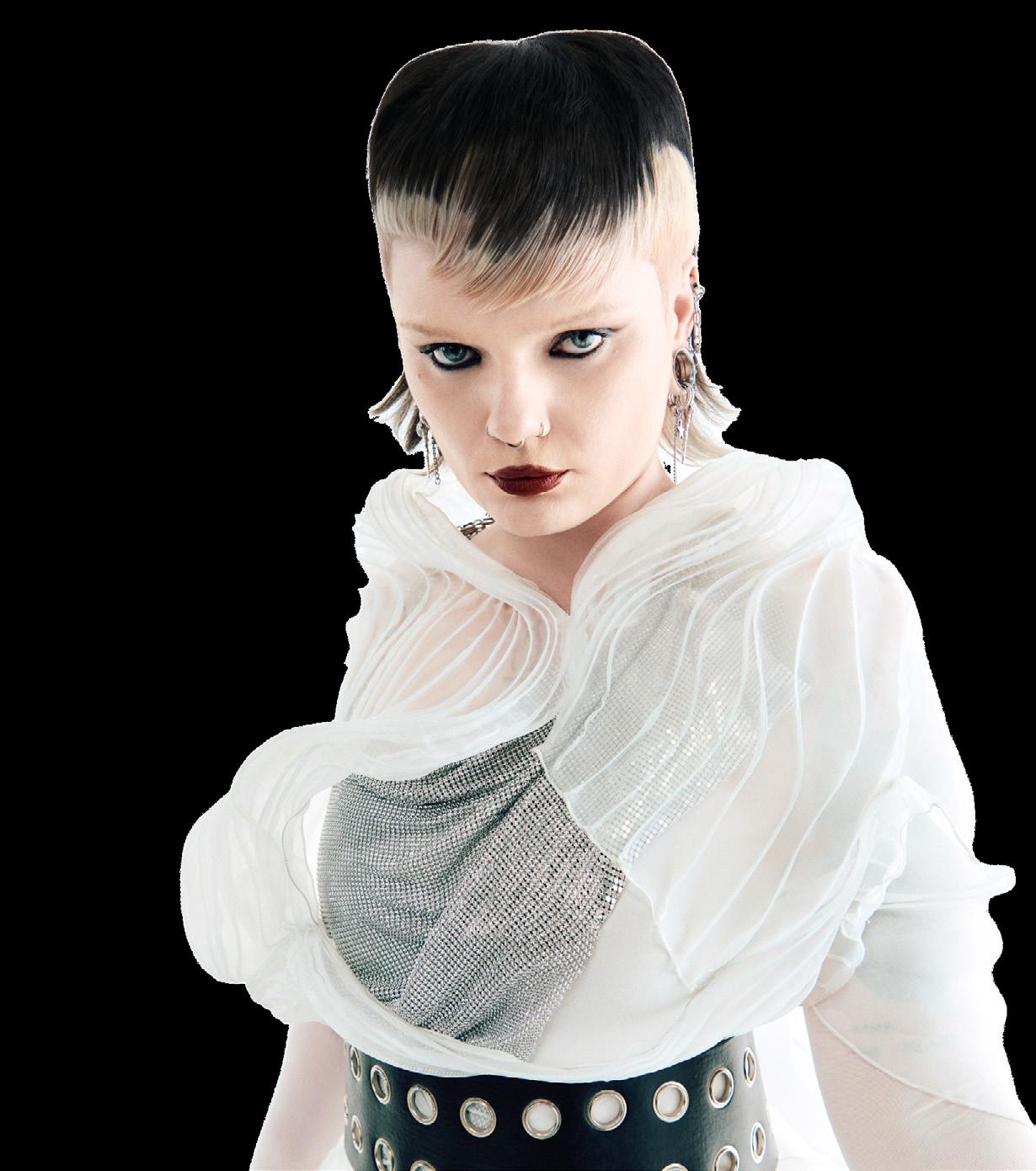 Mod encuentra al rock’n’roll: un corte shag texturizado en rubio hielo –audaz, rebelde y con el espíritu icónico de Edie Sedgwick.