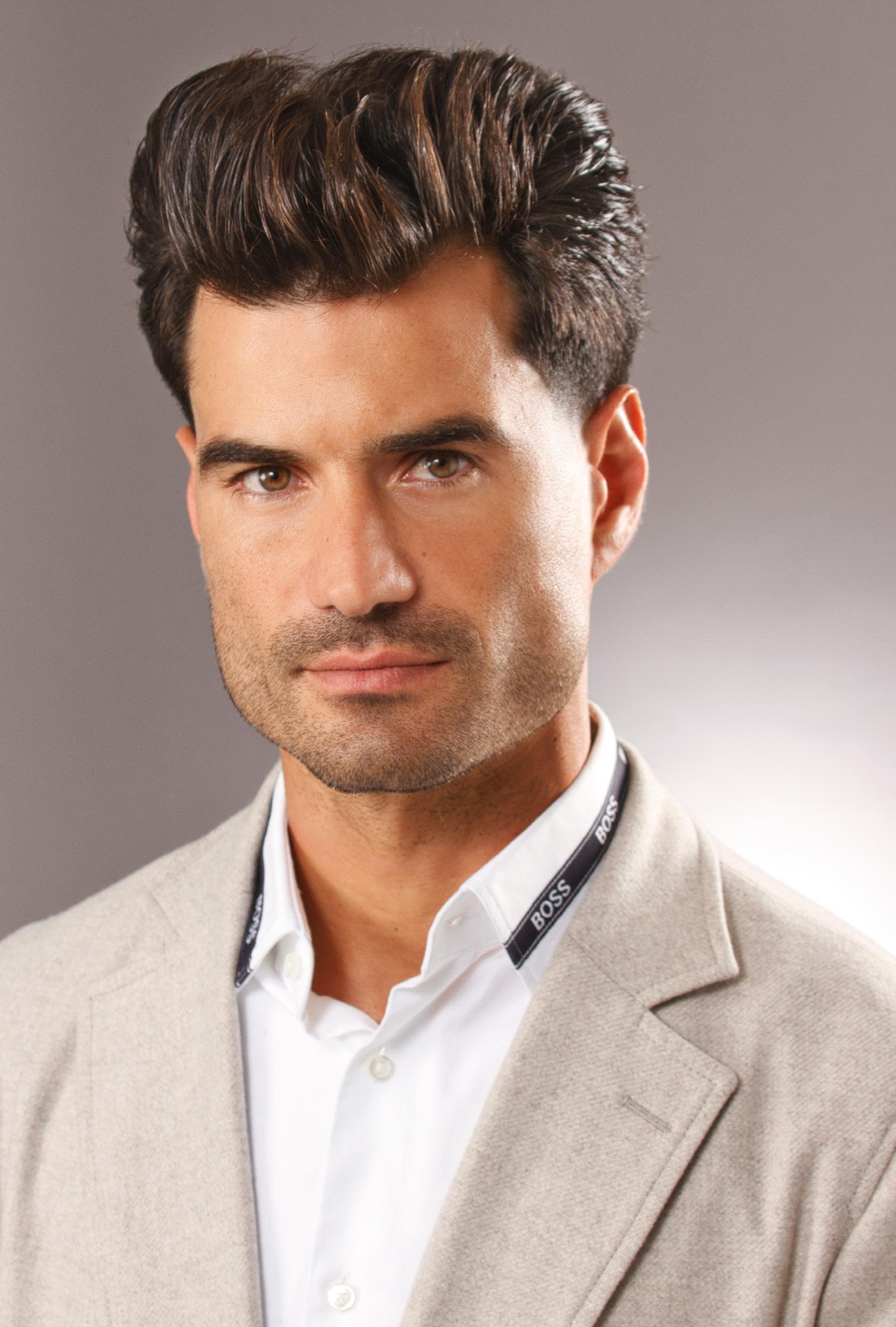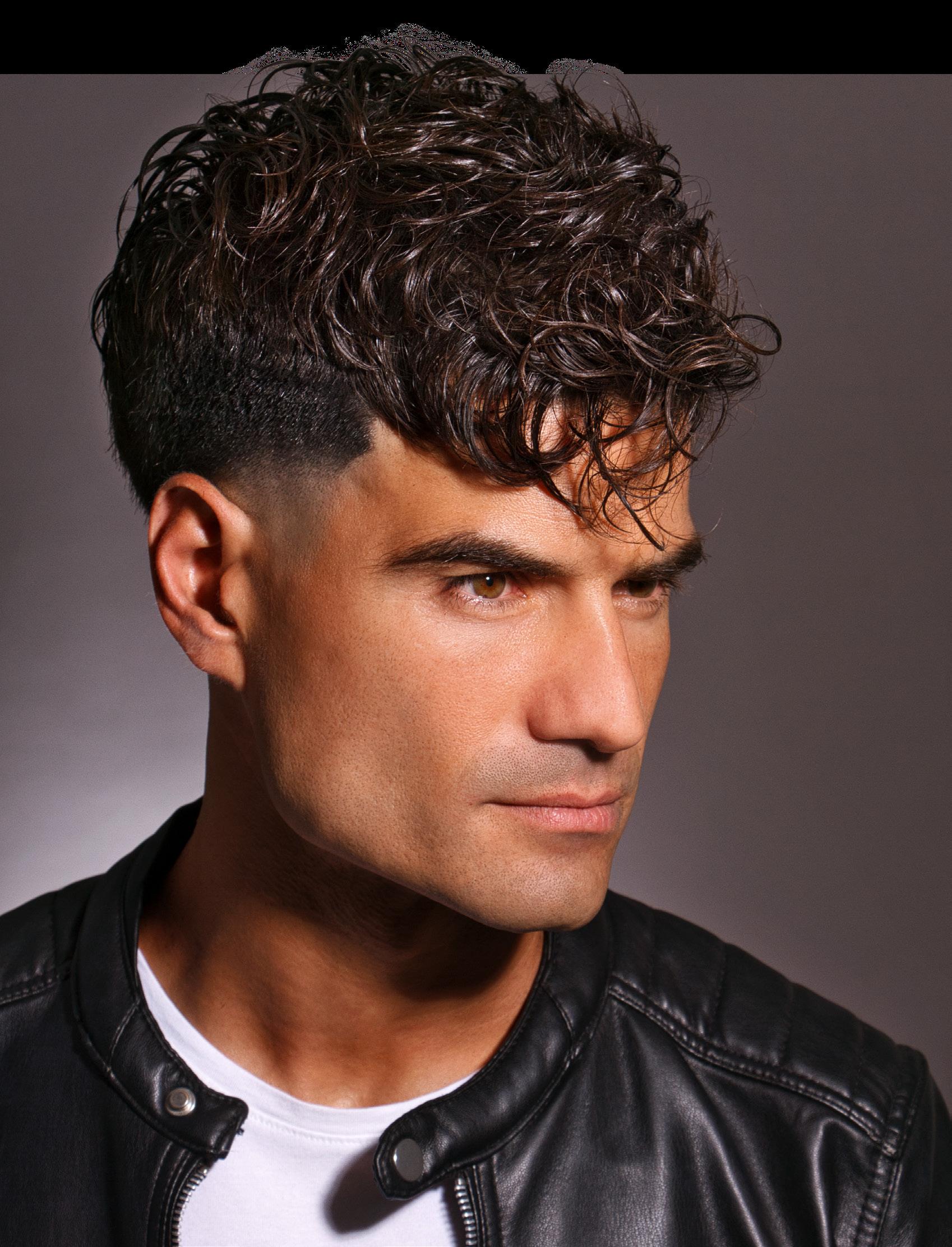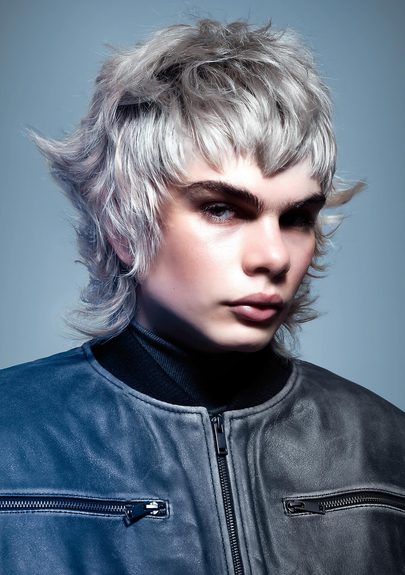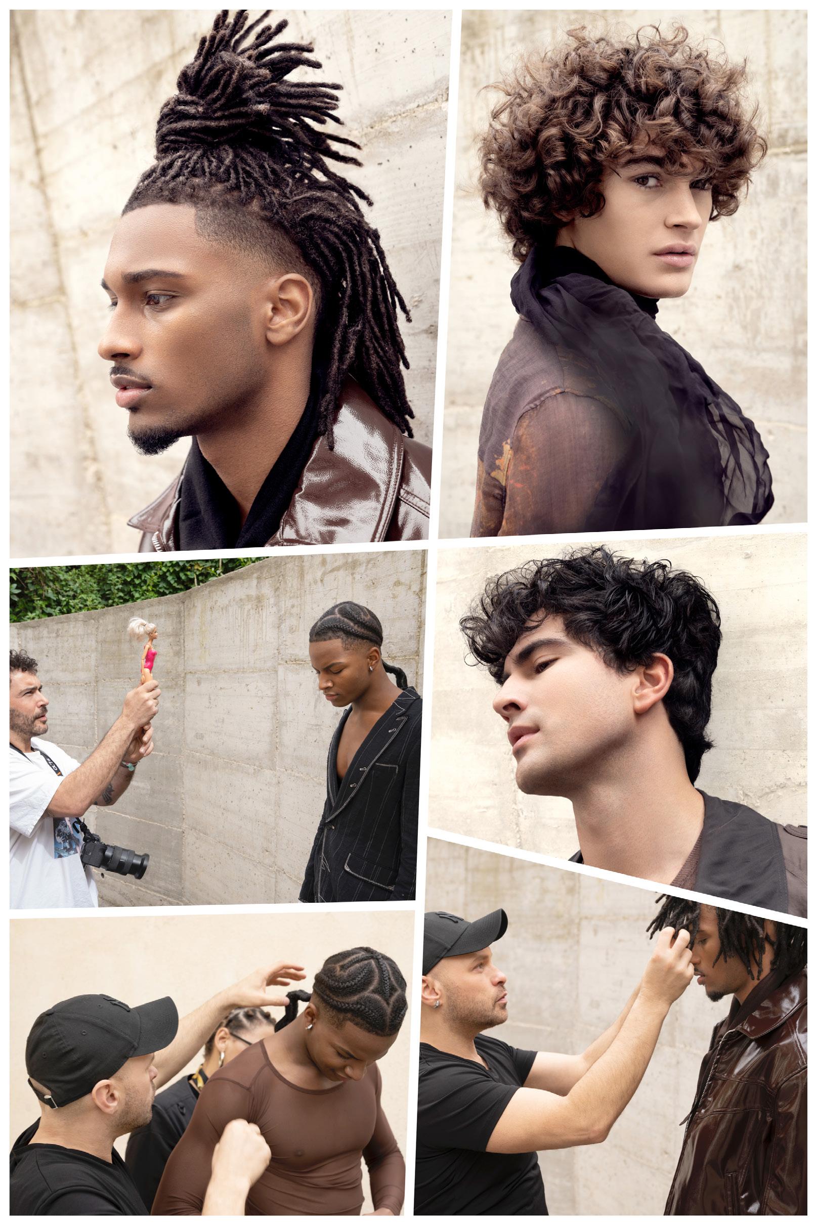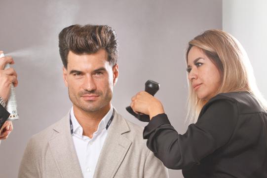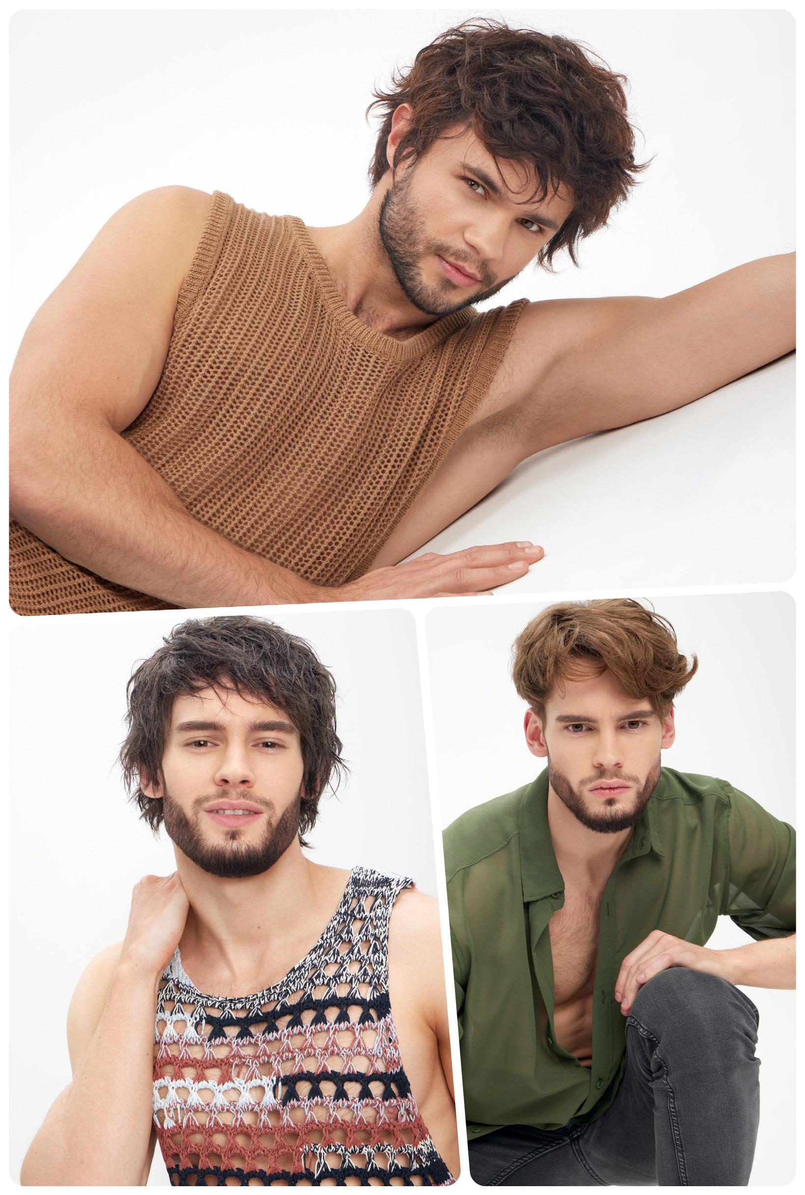 Corte y peinado: JORGE SAGREDO Trajo a escena la tendencia universitaria para caballeros que llenó de energía con looks frescos, desenfadados en líneas shaggie, mullet y tradicional.