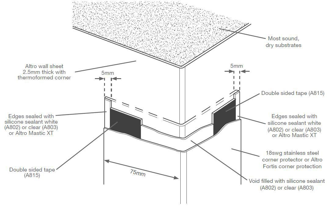 Altro wall system with corner protector fixing detail