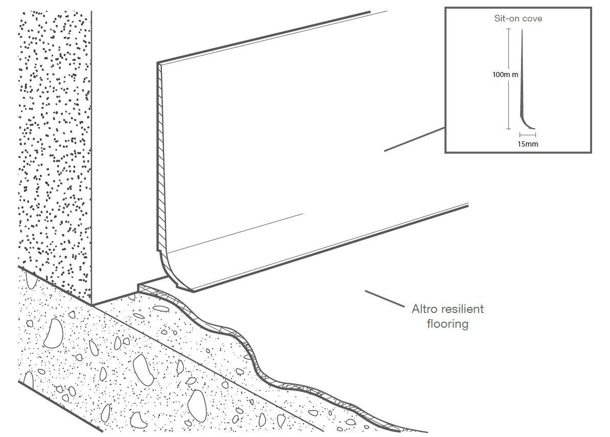 Altro wall system to Altro resilient flooring overlap detail