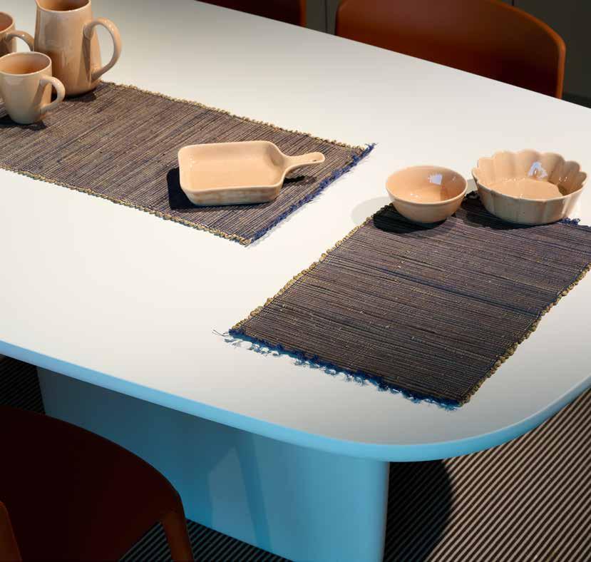 Lana di alpaca e di pecora, fibra di cotone e sari up-cycled, fibra di giacinto d’acqua e di madurkathi, ceramica chulucana, terracotta, gres e ceramica smaltata, fibra di hogla, juta e foglia mais sono i materiali impiegati nella realizzazione dei pregiati manufatti della Craft Design Collection.