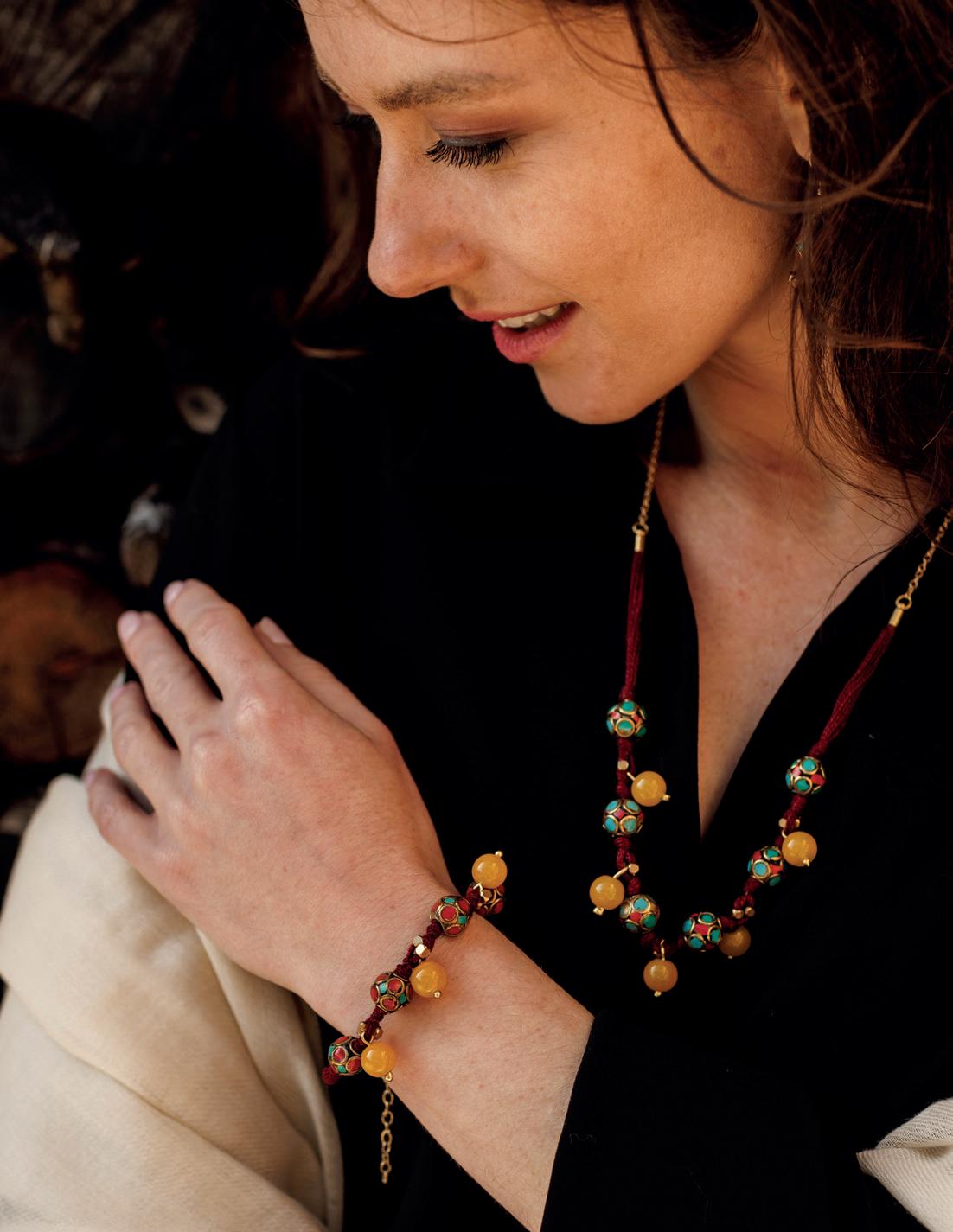 A definire il look i bijoux della collezione pensati per una donna libera di essere ciò che vuole, di esprimere la propria sensibilità indossando materiali lavorati da mani artigiane, capaci di dar vita a forme e colori che permettono di risplendere ed emanare bellezza e positività.