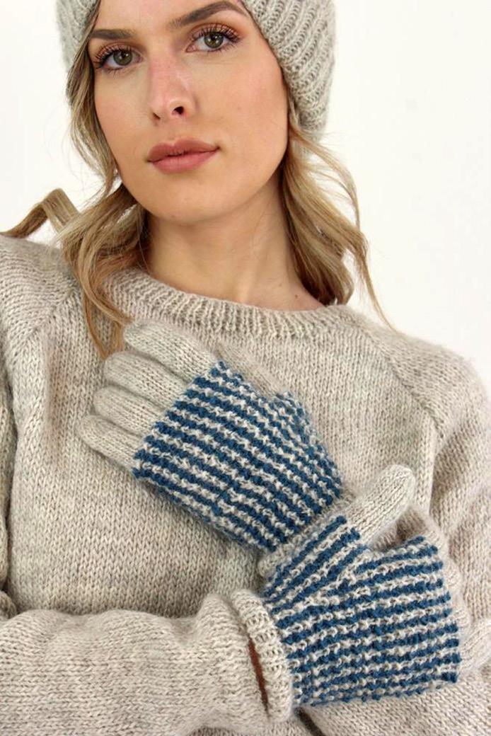 Maglia EDERA, alpaca superfine righe prugna e conchiglia righe blu rodonite e conchiglia