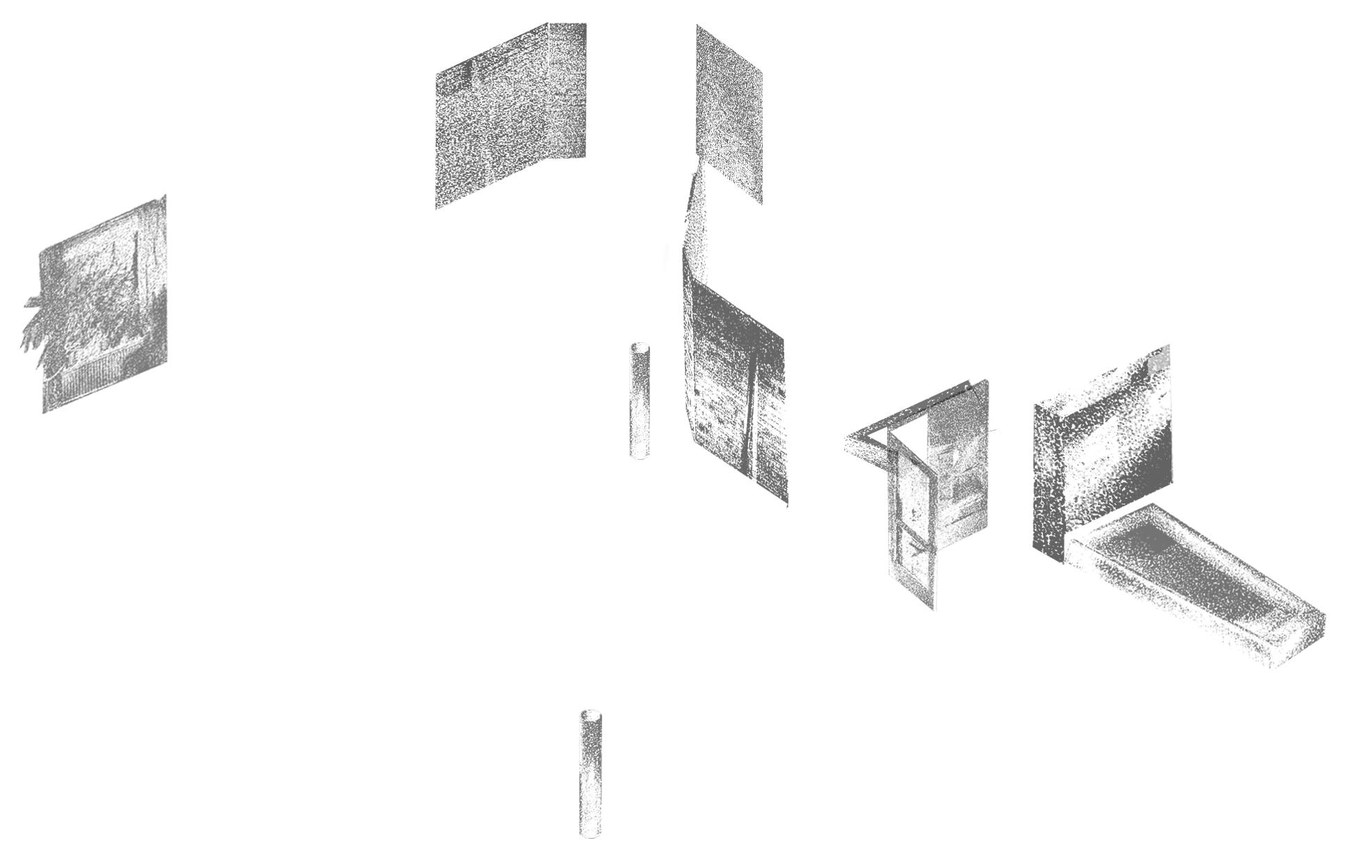 Axonometry of Texas Laser scanned material shows on used building parts of Erskine