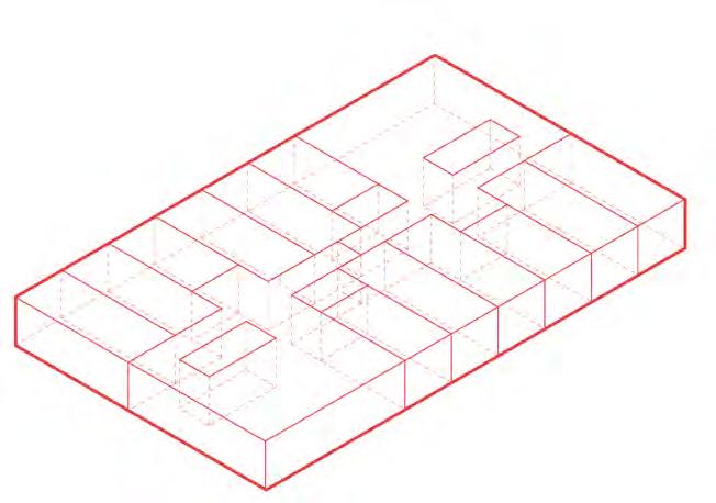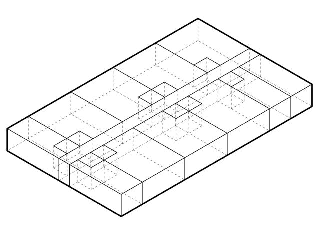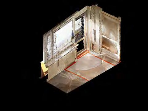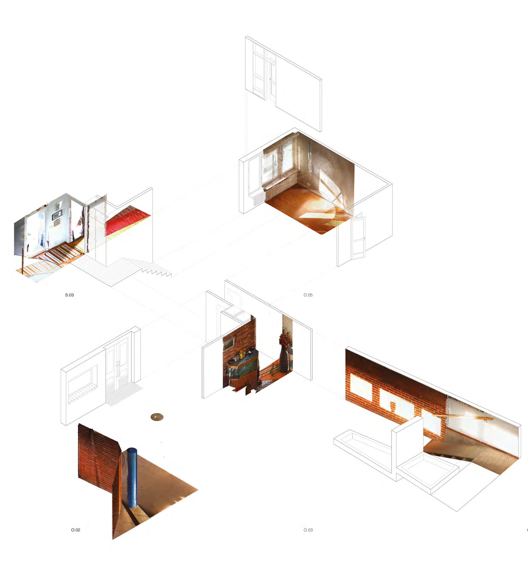 Axonometri av Texas Laserskannat material visar på använda byggnadsdelar av Erskine