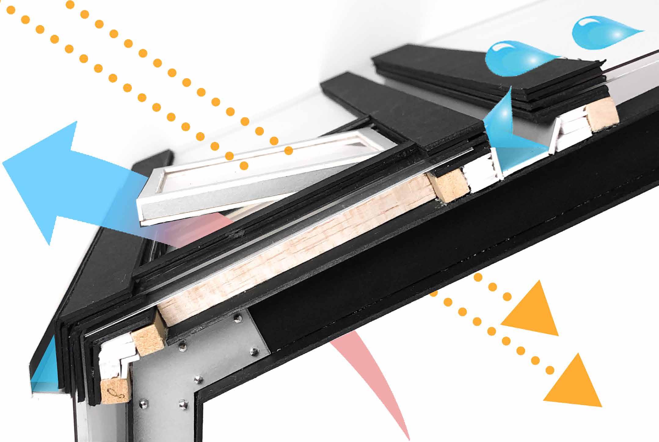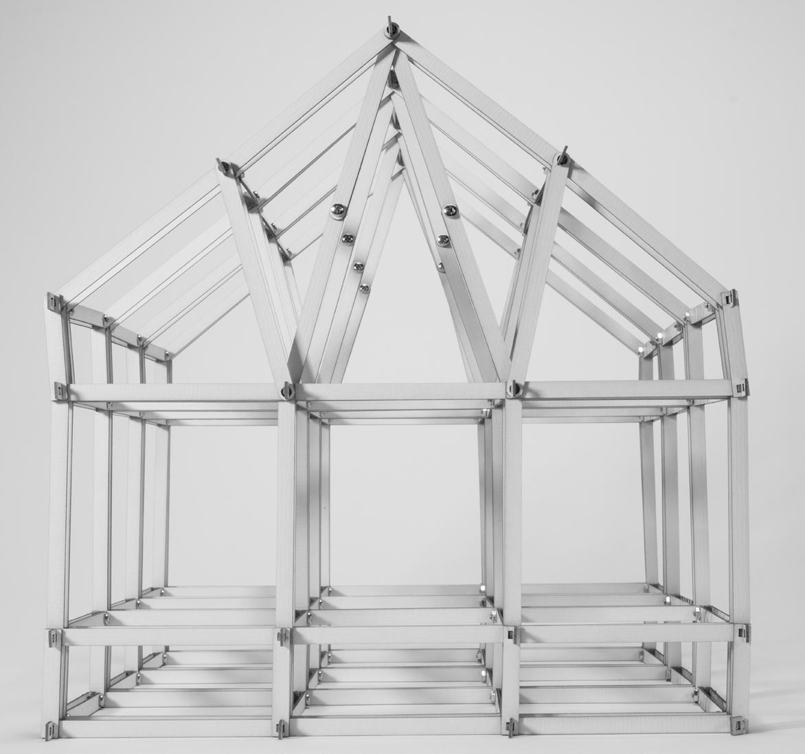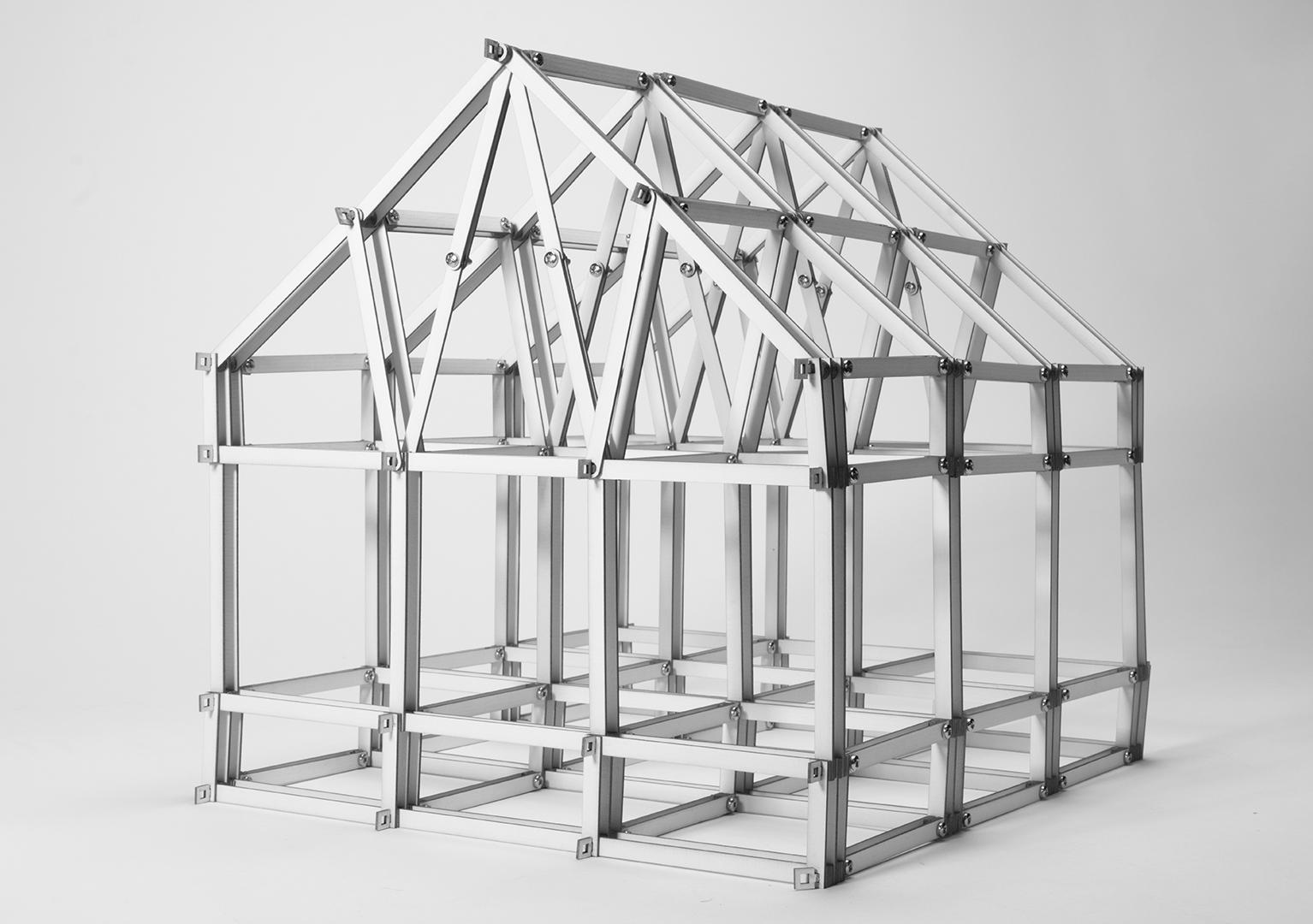 In the 1:20 detail model, the primary steel frame were bolted. Secondary and tertiary structure, including insulation and gutters, were handcrafted