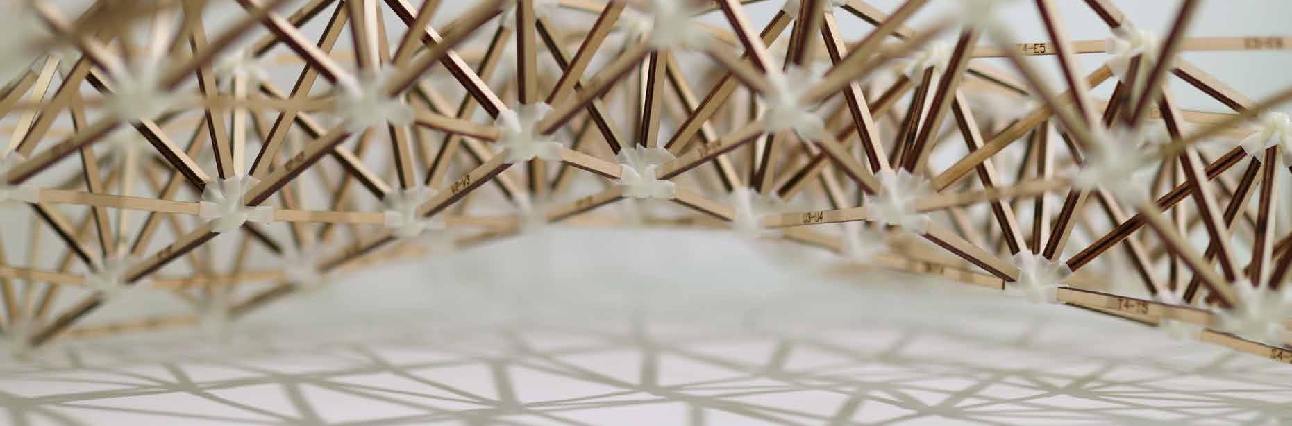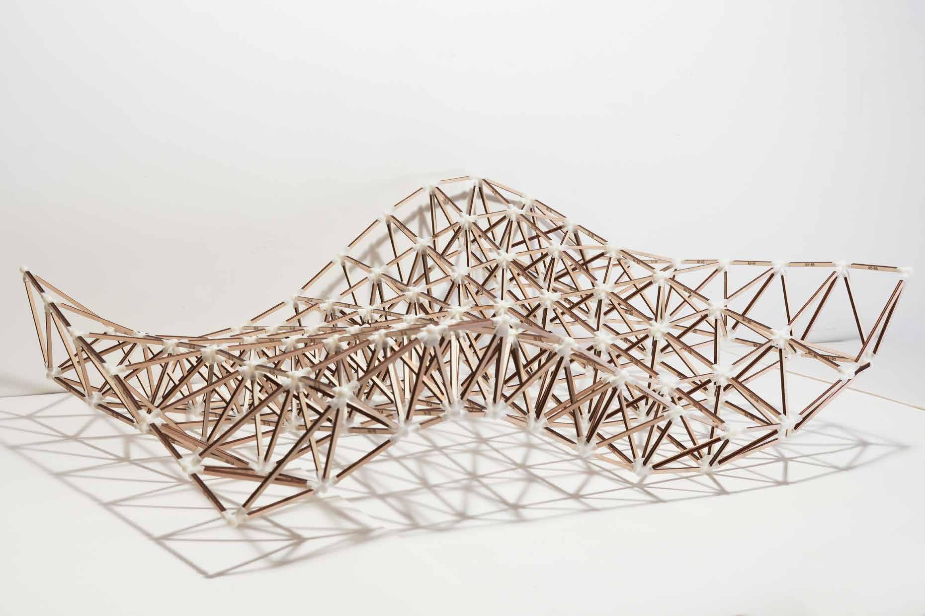 By fine handcraft the trusses and connectors were attached and glued based on incremental labels.