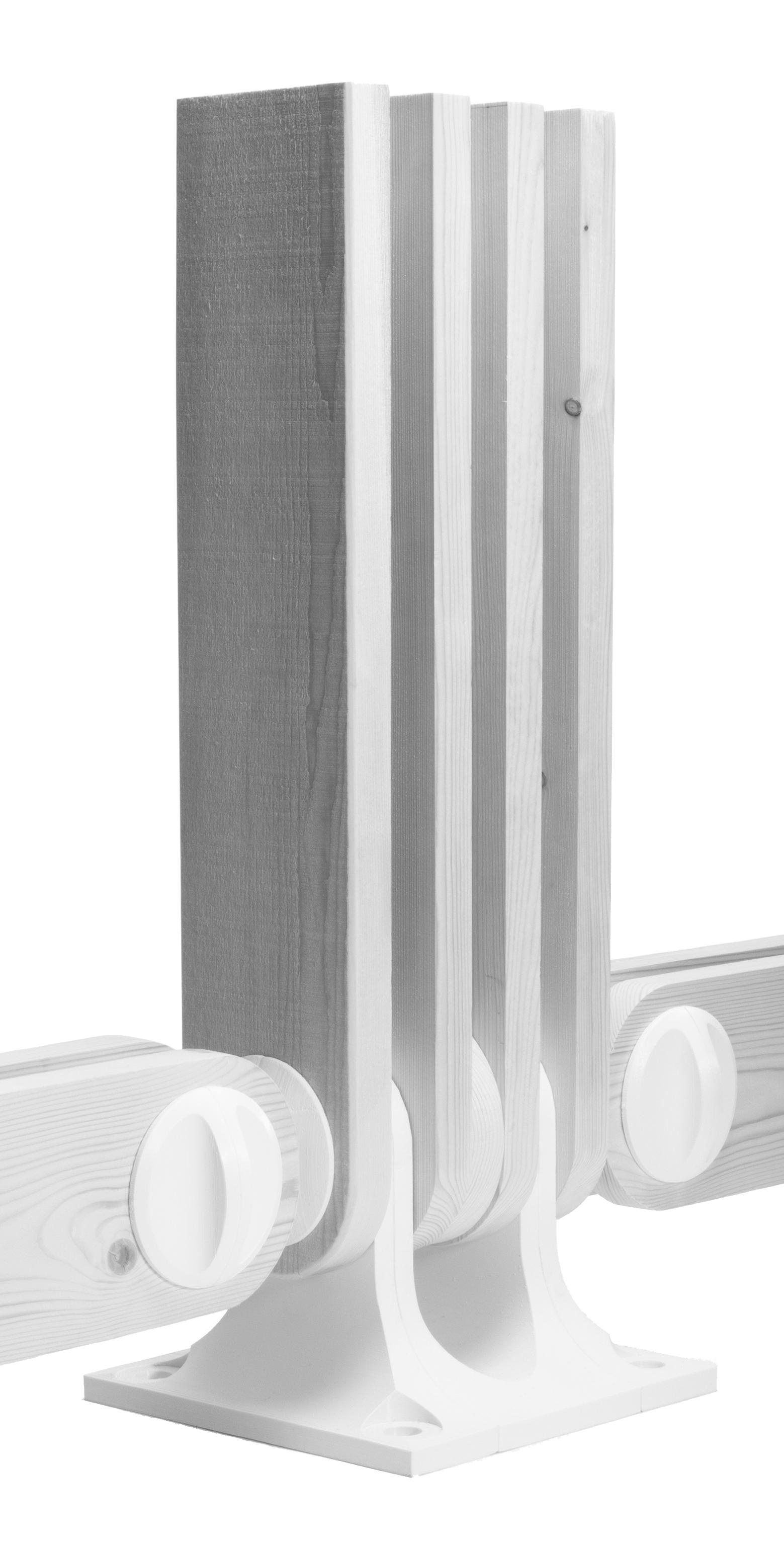 The 1:11/3 prototype is the foundation-to-column connection of refugee homes. Local timber are connected by screw-in modular components to form the primary structure. On Rhinoceros 3D the prototype was first modelled. SubD technique was used to achieve ergonomic handles of the screw-in connectors.