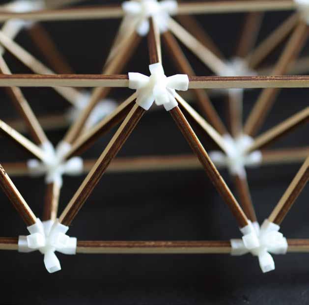 The truss connectors were designed on Rhinoceros 3-D and generated on Grasshopper. They were assigned with 3-D labels for identification, before 3D printing. Using the SLA resin 3-D printer, the connectors were printed. On slicer software Chitubox settings and supports were carefully tested and refined. The prints were cleaned with alcohol and toohbrush, cured by sunlight, and polished with sandpaper.