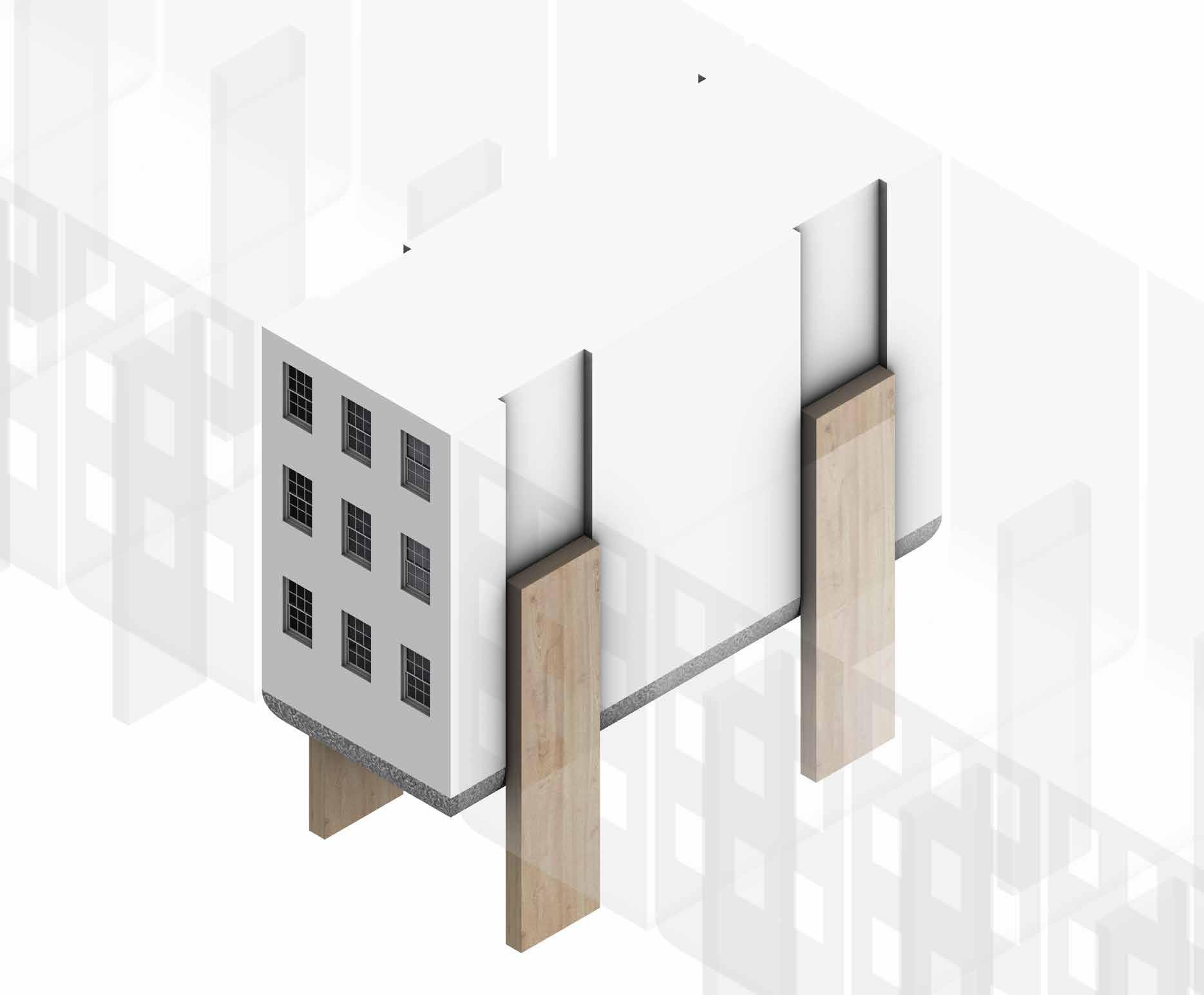 As part of the dissertation, this 1:50 model illustrated the rationale of amphibius architecture — composed of a living unit sitting on a buoyant hull. While existing amphibius buildings tends to be small-scale detached houses, my dissertation proposed that a collective village, even a whole city, can be constructed in flood-risked areas based on the amphibius design.