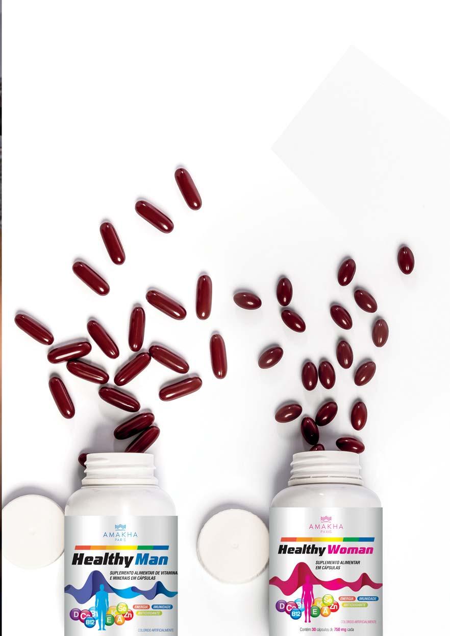 Os polivitamínicos Healthy Man e Healthy Woman foram desenvolvidos para complementar a ingestão diária recomendada de nutrientes.