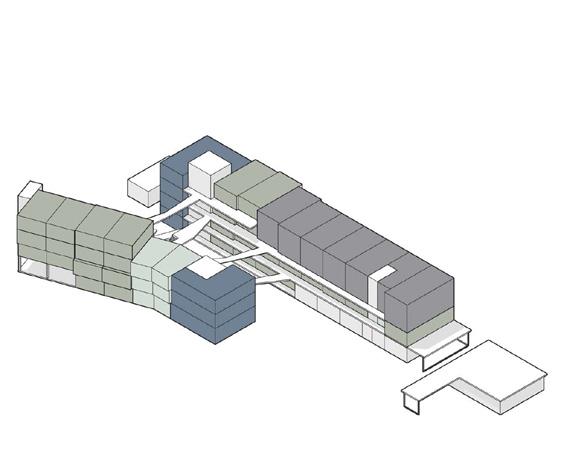 The North Block is positioned at the northern corner of the site, directly addressing Walkley Road as the project’s most publicfacing edge. Due to its proximity to the main road, the building assumes a more civic character, anchored by an event space located along its eastern façade. This programmatic gesture activates the edge condition and establishes a visible point of gathering within the broader housing development.