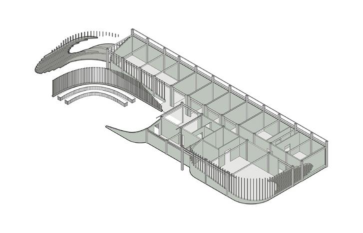The motivation for the learning lab was originally founded in a “Playground for Sound” which utilises architectural bioacoustic design to act as a gradient through the building in order to promote playful and engaging learning. Bioacoustics is the study of production, transmission, and reception of animal sounds in nature which provide researchers insight to species diversity, habitat health, and wildlife behaviour. The design is largely influenced by “sound pods” scattered throughout the building, each playing a certain sound that originates from the site itself, to enrich the learning experience.