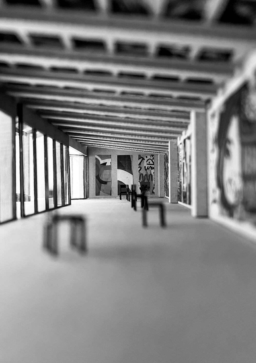 Mycket av utforskandet och en stor del av design processen skedde genom modellbyggandet, där de rumsliga dimensionerna och sambanden undersöktes.