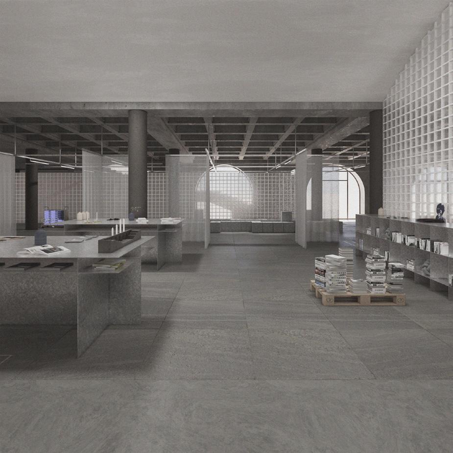 8 Café Phase 2 Transformation Drapes Phase 2 Transformation Conceptual model 1:25 Depicting the trace We started of by extracting the elements that disturbed the overall openness and logic of our proposal. The traces left behind are treated with the same hierarchy as other already existing surfaces in the building. The traces are a consistent element that reappears all over the entrance floor, and reminds the visitor of the previous layout and functions. They are carefully sealed with an equivalent material as the adjacent one, and highlighted with a steel strip along its edges. This allowed us to rearrange the space and its functions, and to add new programs to the building such as a larger store, a workshop and a café, as well as a larger public exhibition, bigger locker room area and restrooms. Traces Trace in relation to fabric and column Phase 2 Transformation Reception Phase 2 Shop Shop