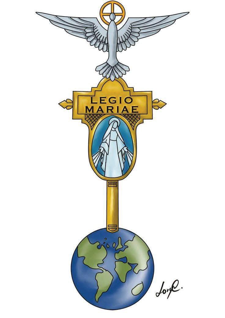 Católica en su perpetua lucha contra las fuerzas nefastas en el Mundo, acaudillados por Aquella que es bella como la luna, brillante como el sol, y -para el Maligno y sus secuaces- terrible como un ejército en orden de batalla: María Inmaculada, medianera de todas las gracias. (Manual Legionario, Página1)
